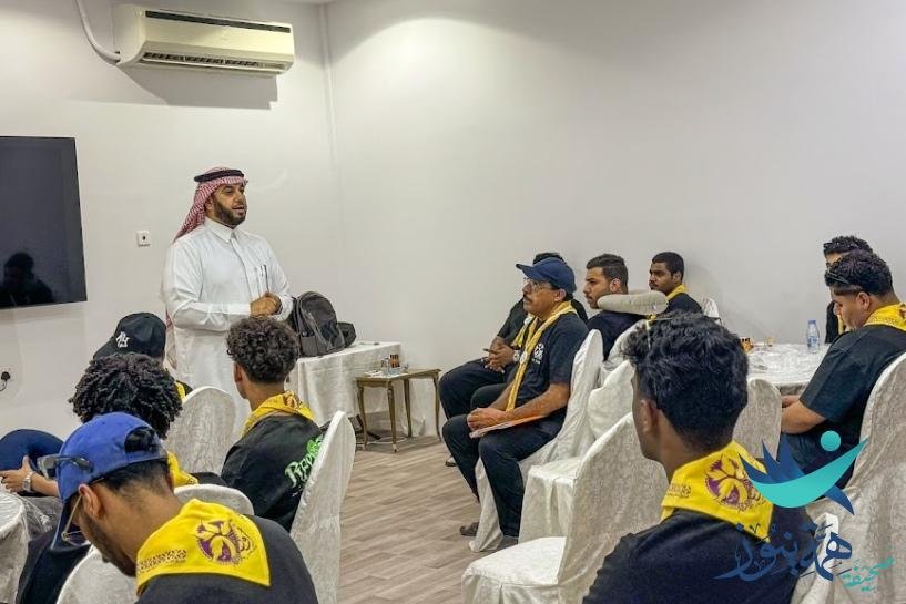 تحت اشراف عام رئيس مجلس الاداره الاستاذ ابراهيم بن صالح الرميح وبمتابعة من قائد الفريق الاستاذ يوسف بن عبدالرحمن بوحميده حيث اجتمع بهم قبل المغادرة إلى بيت الله الحرام مبينن لهم فضل خدمة ضيوف الرحمن ودور الكشافه واوصاهم بتقديم خدمة ضيوف الرحمن والتحليل بالصبرمتمنياً التوفيق لحجاجنا القبول والتوفيق