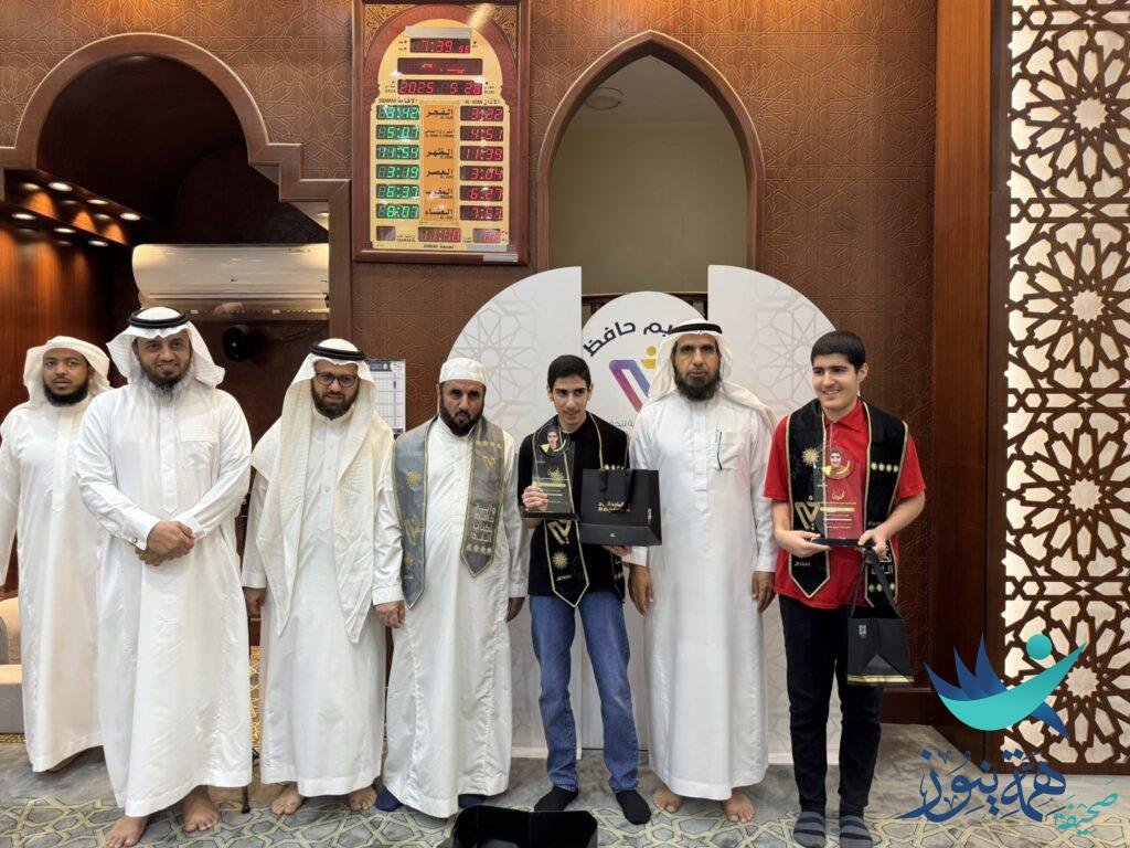 في حفلٍ ساده الفخر بإنجاز قرآني مميز، احتفلت *حلقة أبي دجانة الأنصاري – رضي الله عنه –* بتكريم خاتمي كتاب الله: *الحافظ سارية عبدالله العمري*، و*الحافظ عاصم عبدالله العمري*، بعد إتمامهما حفظ كتاب الله عز وجل، وسط أجواء مفعمة بالفرح والبهجة.حضر التكريم: الدكتور/ سليمان الحصين المدير التنفيذي للجمعية، والدكتور/ محمد عطران مدير إدارة الشؤون التعليمية.افتُتح الحفل بتلاوة مباركة من الخاتمين، أعقبتها كلمة ألقاها مشرف الحلقات *الشيخ عبدالرحمن الجاسم*، عبّر فيها عن شكره وامتنانه للجمعية على جهودها المباركة، وفخره بهذا المنجز القرآني، وهنّأ الخاتمين وأسرتهم بهذا الفضل العظيم.كما ألقى *الدكتور عبدالله العمري*، والد الخاتمين، كلمة مؤثرة عبّر فيها عن سعادته الغامرة، ورفع شكره للجمعية، متحدثًا عن فضل القرآن الكريم وأثره في حياة الفرد والمجتمع.واختُتم الحفل بتكريم الخاتمين، وسط تهاني الحضور ودعواتهم لهما بمزيد من التألق والثبات على كتاب الله.
