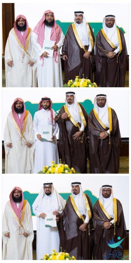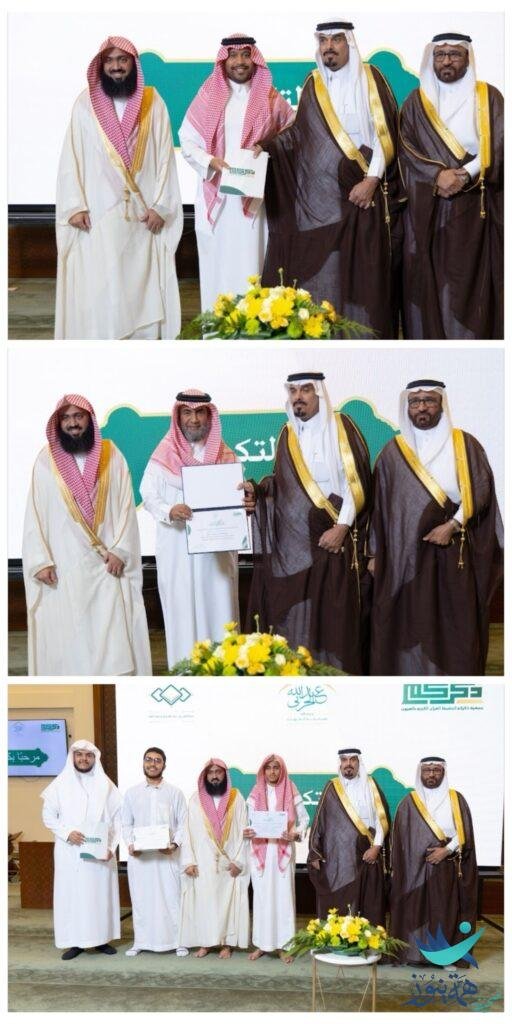 وبعد ذلك قدم تهنئته باسمه واسم أهالي مدينة العيون لرئيس جمعية ذكركم لتحفيظ القرآن الكريم وإمام وخطيب جامع الأمير سلطان رحمه الله بمدينةالعيون بالأحساء والمشرف على المسابقه الأستاذ الشيخ عبدالله بن سعد القرناس بمناسبة حصوله على درجة الماجستير بتقدير ممتاز في الكتاب والسنة…. تم تكريمه بدرع تذكاري من قبل الجمعية…