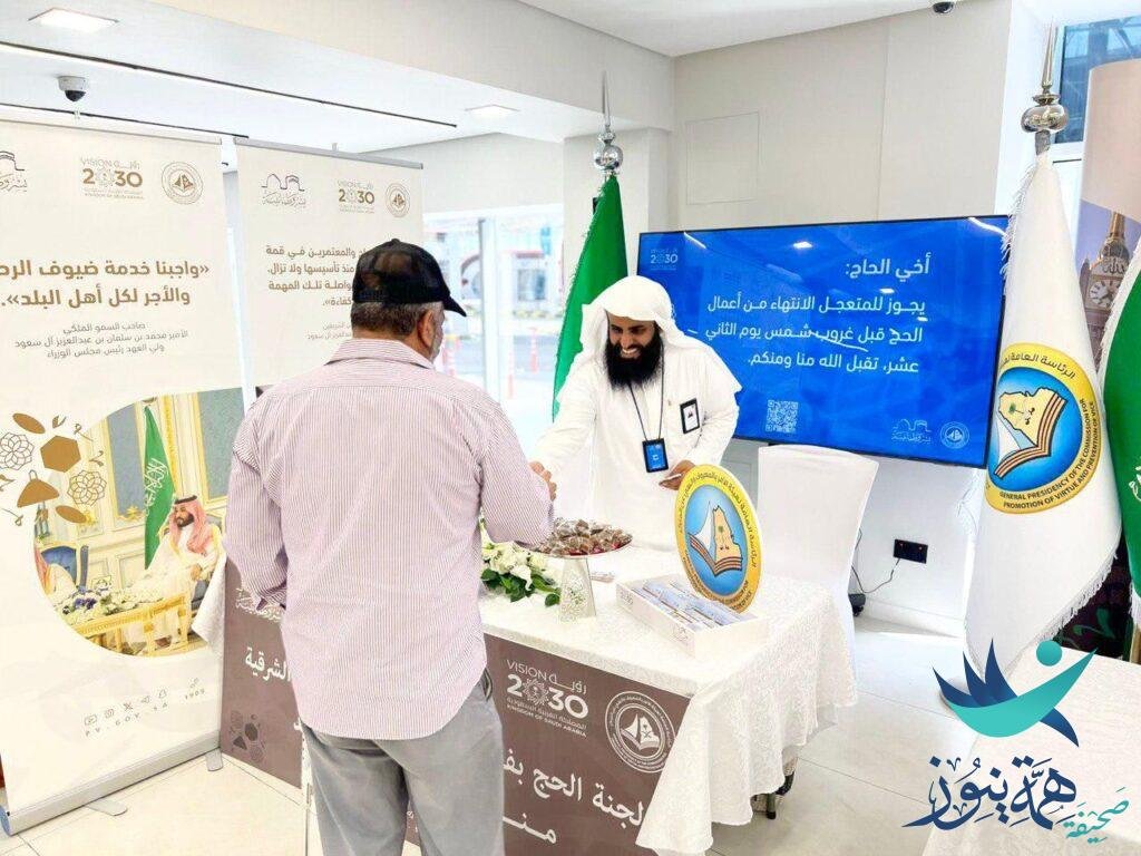 تستمر لجنة الحج بفرع الرئاسة العامة لهيئة الأمر بالمعروف والنهي عن المنكر بالمنطقة الشرقية في استقبال ضيوف الرحمن عبر منافذ: (البطحاء، و منفذ الربع الخالي، و منفذ سلوى، ومنفذ الرقعي، و منفذ جسر الملك فهد الحدودي) .