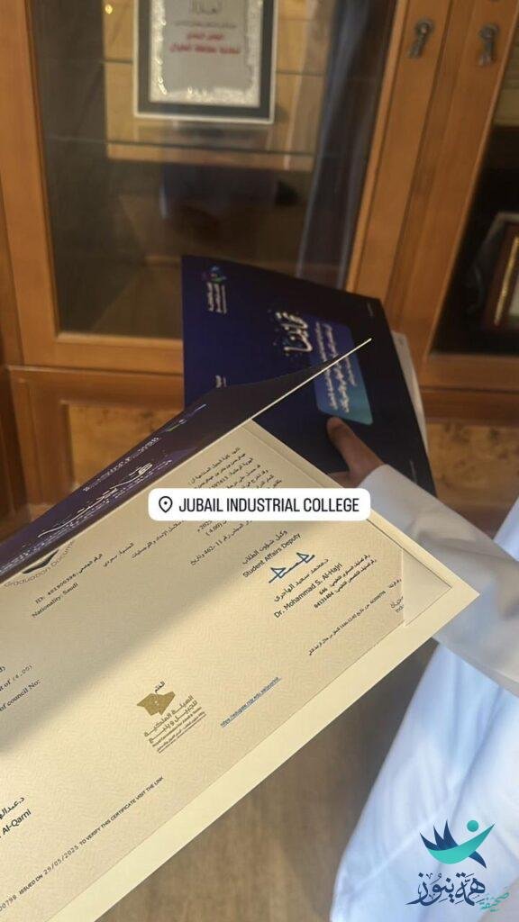 وذلك بمناسبة تخرّجه من كلية الجبيل الصناعية و حصوله على درجة البكالوريوس في تخصص