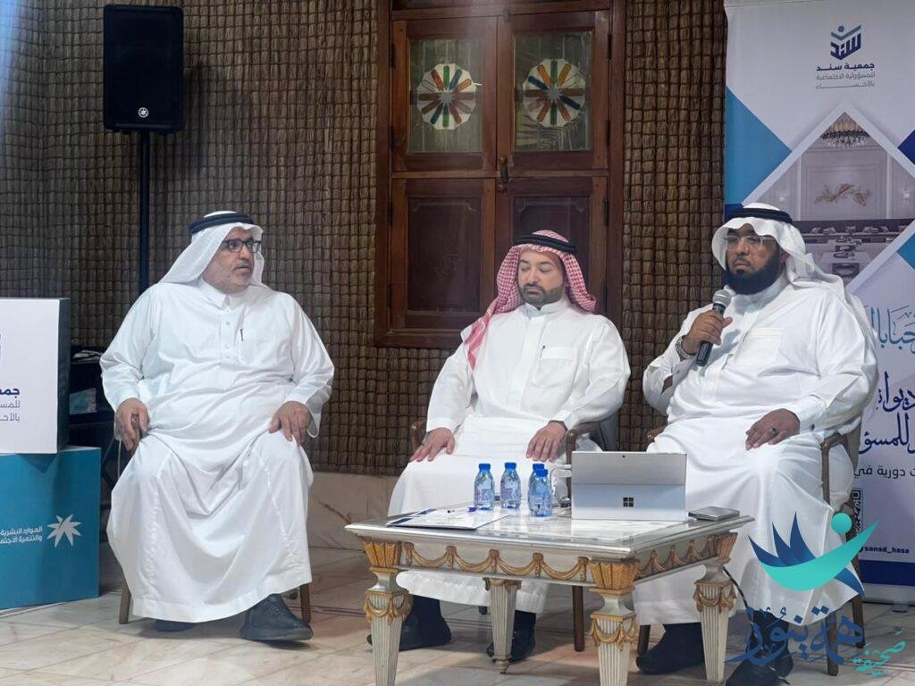 نظمت جمعية سند للمسؤولية الاجتماعية بالأحساء اللقاء الثالث من لقاءات ديوانية سند للمسؤولية الاجتماعية في دار نورة الموسى، بحضور الدكتور محمد العيد،رئيس مجلس إدارة الجمعية ، ومسؤوليها، والضيف المميز الدكتور سعود القويزاني، إلى جانب نخبة من الإعلاميين ونخب من المهتمين بالمسؤولية الاجتماعية