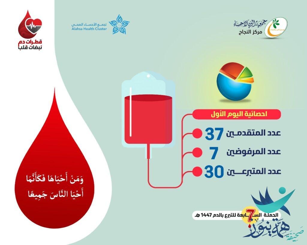 انطلقت يوم الخميس الموافق 10 يوليو 2025 الحملة السابعة للتبرع بالدم في مركز صحي شعبة المبرز حيث انطلقت الحملة الساعة 4:30 بتدشين مشترك من مدير المراكز بجمعية البر بالأحساء وممثل تجمع الأحساء الصحي الدكتور قاسم العلوان وحضور من المتبرعين والمواطنين ومتطوعي جمعية البر بالأحساء حيث كانت الجولة الاستطلاعية على الأركان وآلية العمل المنظم ،الجدير ذكره أن هذه الحملة هي السابعة في تاريخ المركز والأولى من حيث التنفيذ في مركز صحي شعبة المبرز حيث شاركت الجمعية بالدعم اللوجستي والتجهيزات والتغطيات الإعلامية وحضور متطوعين تجاوز 26 متطوعا