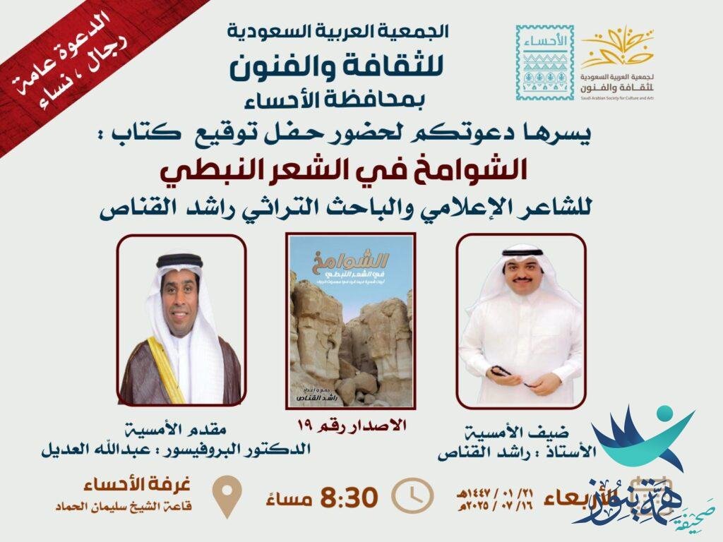 يتشرف الشاعر الإعلامي والباحث التراثي الأستاذ راشد القناص دعوتكم لحضور توقيع كتابه