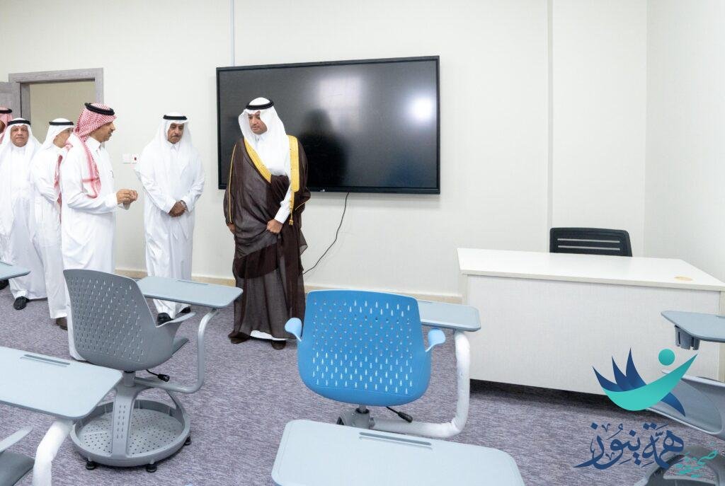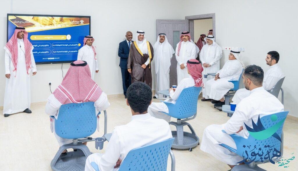 واطّلع سموّه على الإمكانات التدريبية والتعليمية المتوفرة، حيث تجول بالقاعات الدراسية والمختبرات والمعامل، واستمع إلى شرح مفصل من عمداء الكليات حول البرامج الأكاديمية والخطط التطويرية التي تهدف إلى رفع جودة التعليم وتحقيق مخرجات متميزة تتماشى مع مستهدفات رؤية المملكة 2030.