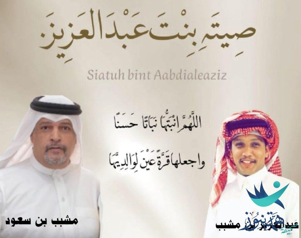 رزق الشاب عبدالعزيز بن مشبب السبيعي مولوده ابن الأستاذ المعروف صاحب حفلات أفراح مدينة العيون بمحافظة الأحساء مشبب بن سعود العمر السبيعي اسمها (صيتة)