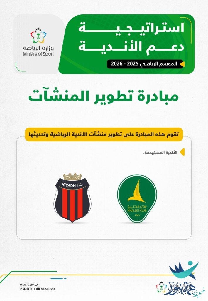 وسيتواصل العمل في مبادرتي “تطوير المنشآت” و”التحول الرقمي”، حيث سيتم البدء في أعمال التطوير الشامل في منشآت نادي الخليج ونادي الرياض، مع الاستمرار في تطبيق ما تم العمل به سابقًا ضمن مبادرة التحول الرقمي من خلال: