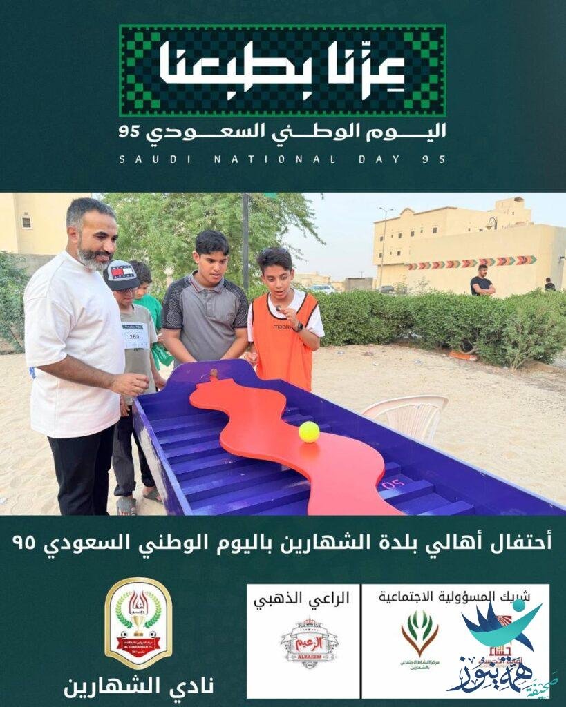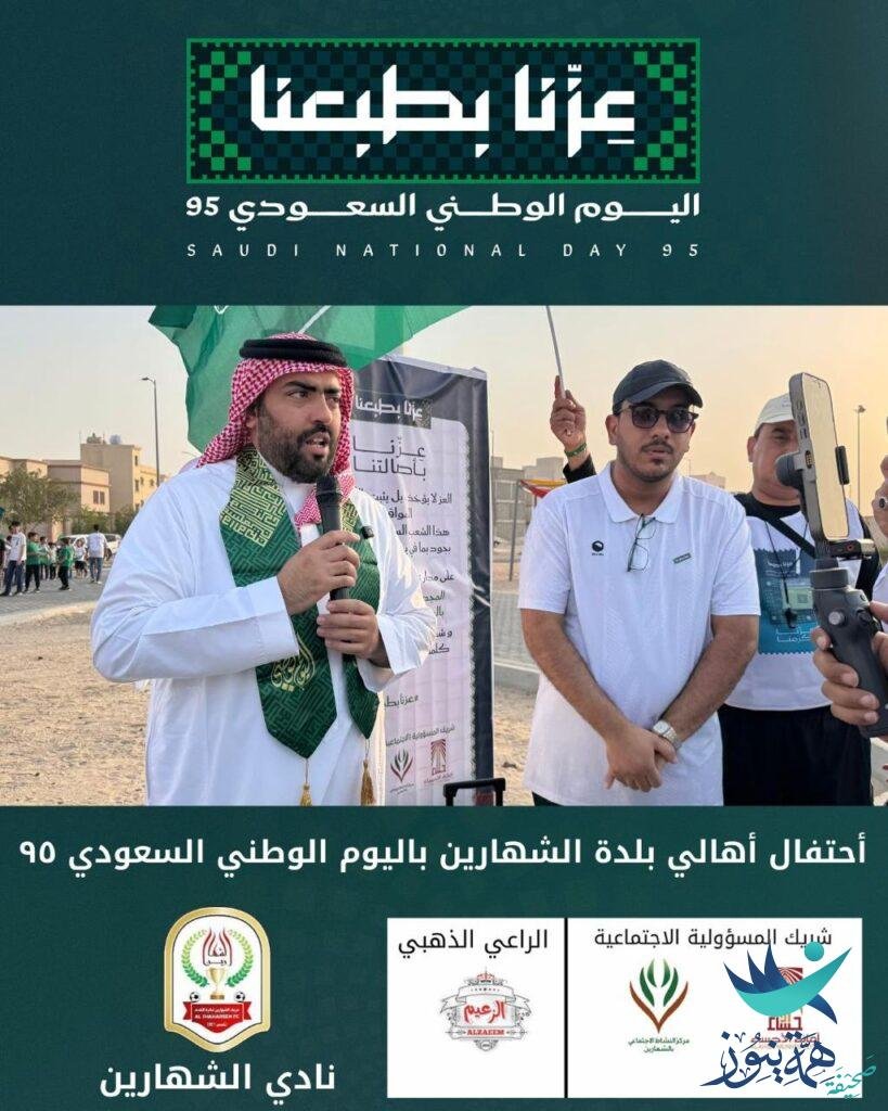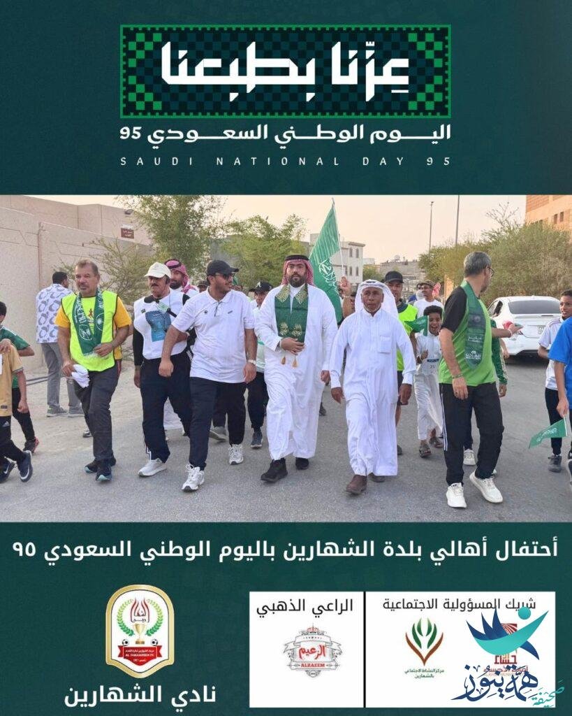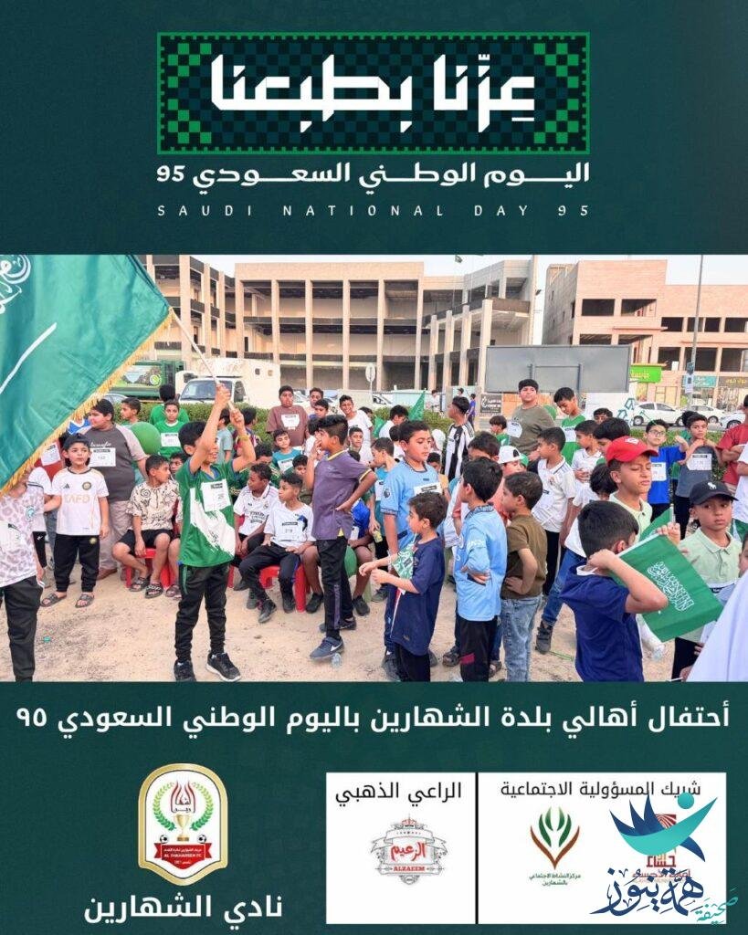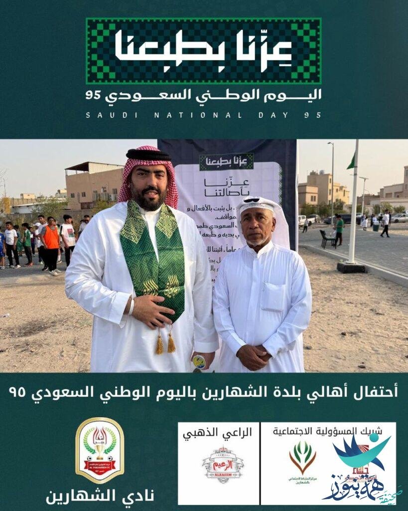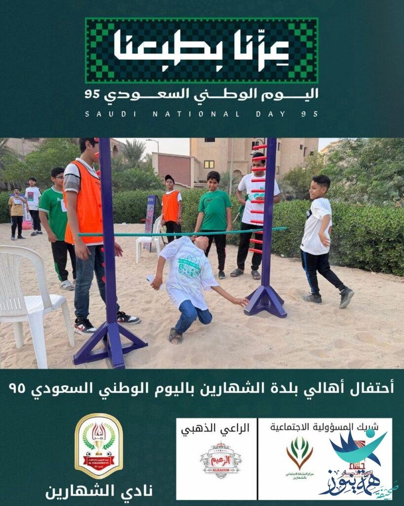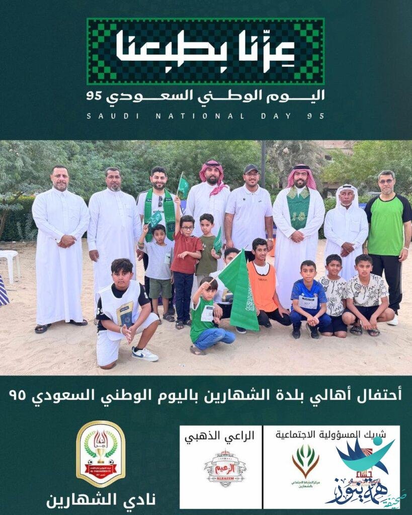 وبهذه الفعاليات المبهجة، عبّر أهالي بلدة الشهارين عن ولائهم وانتمائهم، مجسدةً صورة من صور التلاحم الوطني والفرحة بالذكرى الـ95 لتأسيس المملكة العربية السعودية.
