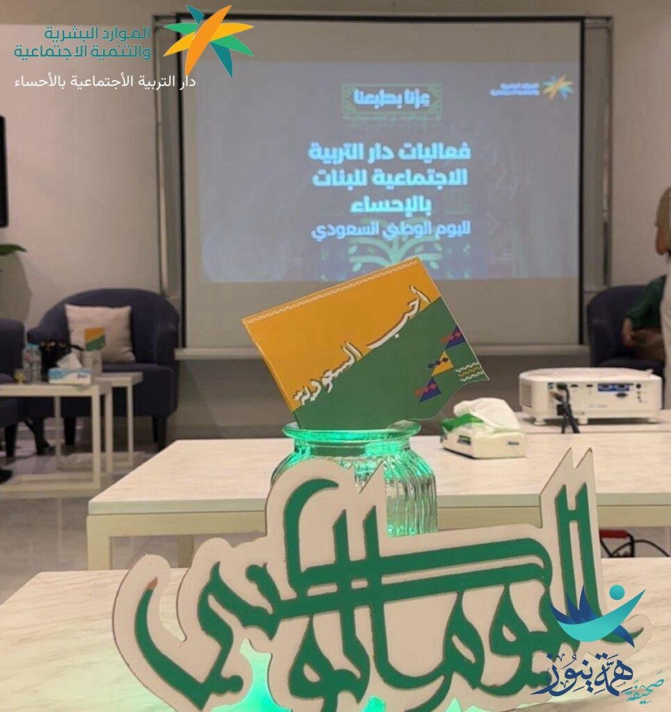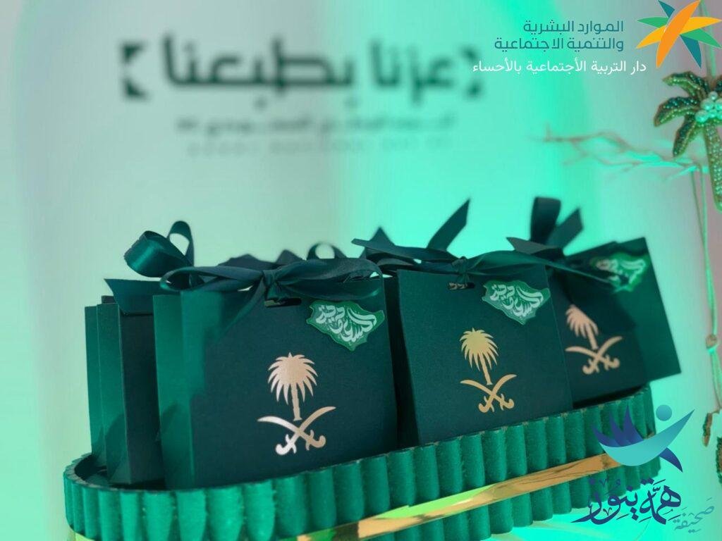 في أجواء وطنية مفعمة بالفخر والاعتزاز، احتفلت دار التربية الاجتماعية للبنات بالأحساء باليوم الوطني الـ95 للمملكة العربية السعودية تحت شعار “عزنا بطبعنا”، وذلك بحضور مديرة وحدة الإشراف بالمنطقة الشرقية الأستاذة نورة فلاح ابن شري، والمتقاعدات وأمهات المستفيدات، إضافة إلى منسوبات الدار.