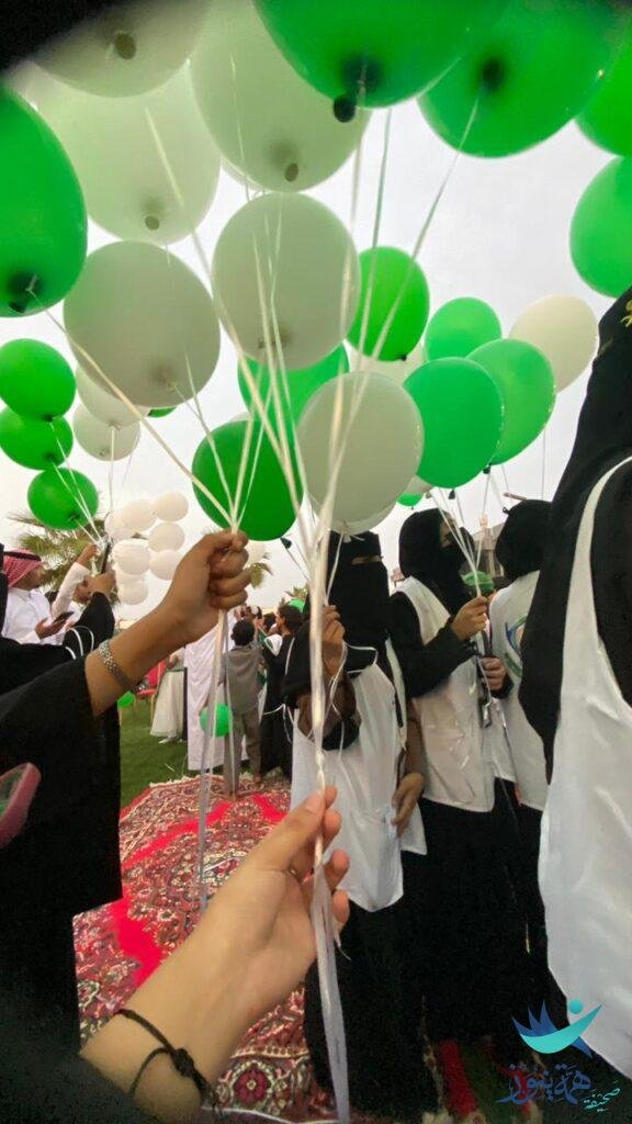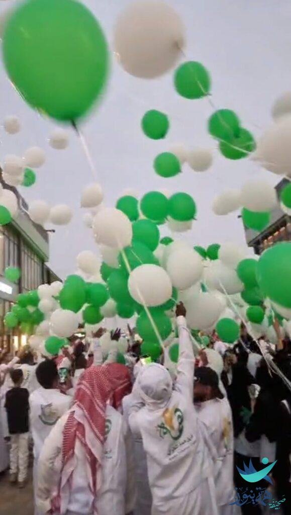 حيث انطلقت الفعاليات بإطلاق البالونات الخضراء وذلك بإطلاق 995 بالونة خضراء في بداية الفعالية، ترمز للاعتزاز بالوطن.