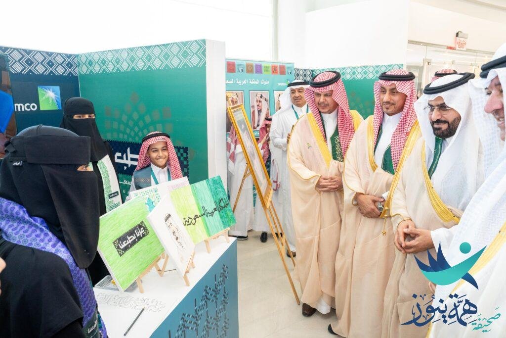 واستُهل الحفل بافتتاح سعادة وكيل المحافظة للمعرض الوطني المصاحب، الذي اشتمل على ستة أركان تعنى بالجوانب الوطنية، إضافة إلى مرسم فني شارك فيه طلاب وطالبات المدارس.