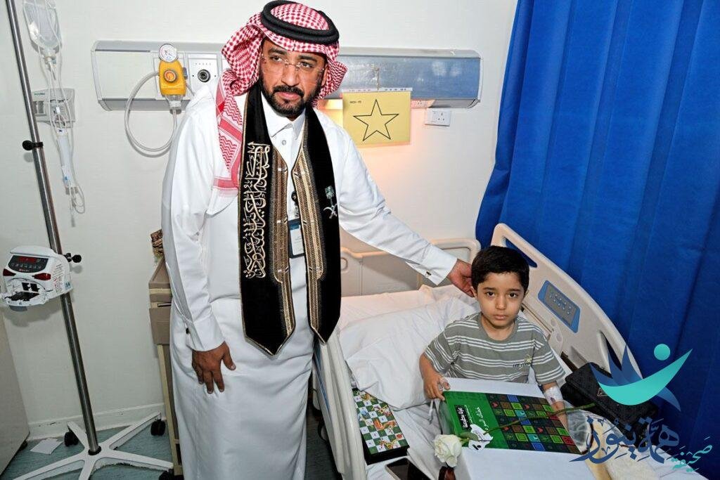 وفي بادرة أدخلت الفرح والسرور على قلوبهم، قام الحضور بزيارة الأطفال المنومين في أقسام المستشفى، وقدموا لهم الورود والهدايا، بهدف رسم البسمة على محياهم في هذه المناسبة التي تعم فيها الفرحة أرجاء الوطن، متمنين لهم الشفاء العاجل.