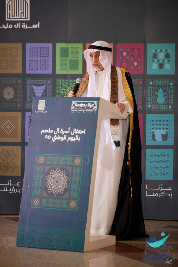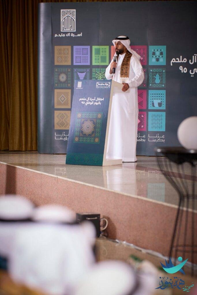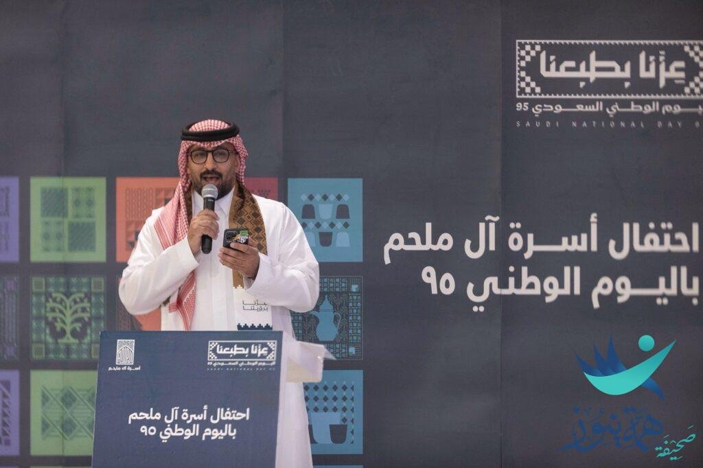 في أجواء احتفالية تجسد أجمل معاني الإنتماء والولاء للوطن والفخر بإنجازاته ، احتفلت أسرة آل ملحم مساء أمس بمناسبة اليوم الوطني للمملكة العربية السعودية ٩٥ – وتضمن الحفل كلمة لعميد الأسرة الشيخ عبدالله بن عبدالمحسن الملحم والقاء عدد من القصائد الشعرية والمشاركات الوطنية قدمها تباعاً الشاعر ثامر بن احمد الملحم وتبعها أوبريت (عزنا بطبعنا) قدمهُ عبدالله بن فهد الملحم.