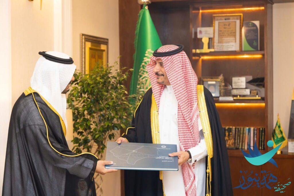 وتسلم سموه خلال اللقاء نسخة من الملخص التنفيذي للمخطط الشامل لمحافظة حفر الباطن، واطلع سموه على عرض مرئي عن البرنامج الزمني للمخطط، ودور الجهات في تنفيذ المخطط ، الذي يهدف لتعزيز مكانة محافظة حفر الباطن كمركز حضري رائد يواكب مسار التنمية والازدهار الذي تشهده المملكة، متماشياً مع مستهدفات رؤية السعودية 2030 والذي صُمم ليكون أساساً تنموياً متيناً يعكس التخطيط الحضري الحديث، مع التركيز على تحقيق تنمية متوازنة ومستدامة تلبي احتياجات المحافظة الحالية والمستقبلية.