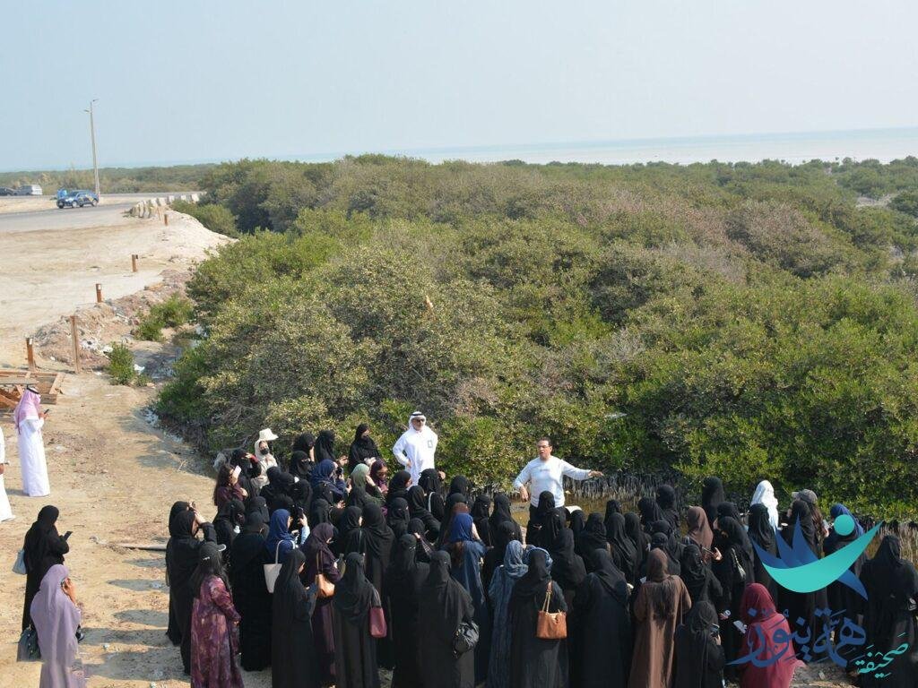 (نظّمت بلدية محافظة القطيف، اليوم الثلاثاء، برنامجا علميا استضافت خلاله 130 طالبة من قسم التاريخ والتراث بكلية الآداب – جامعة الإمام عبد الرحمن بن فيصل، في شاطئ المانجروف بجزيرة دارين وتاروت، ضمن مبادرات السياحة والاستدامة البيئية.