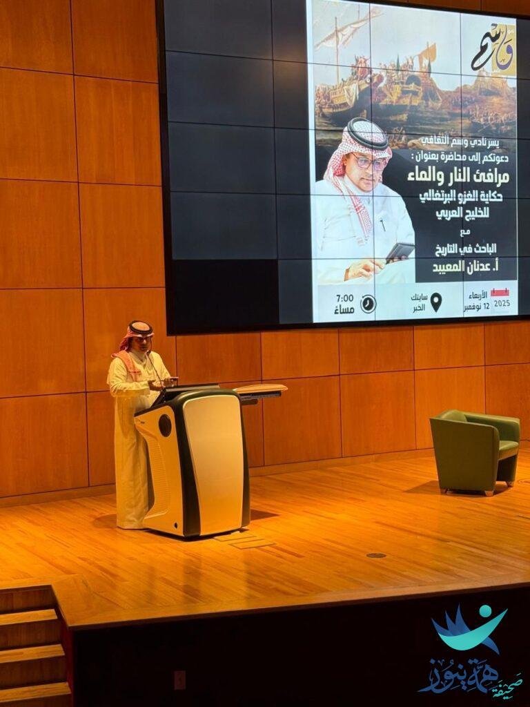 بحضور عدد من الشخصيات الاجتماعية والثقافية والإعلامية والمهتمين استعاد نادي وسم الثقافي في أمسية مرافئ النار والماء جزءا مهما من ذاكرة الدمام عبر عرض قدّمه عدنان المعيبد تناول فيه بدايات دخول البرتغاليين إلى الخليج وما شهدته المدن الساحلية في تلك المرحلة من صراع وتحوّل وخصوصا الدمام التي توقّف عند تفاصيلها وأحداثها الأولى