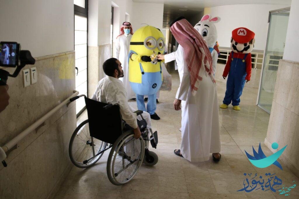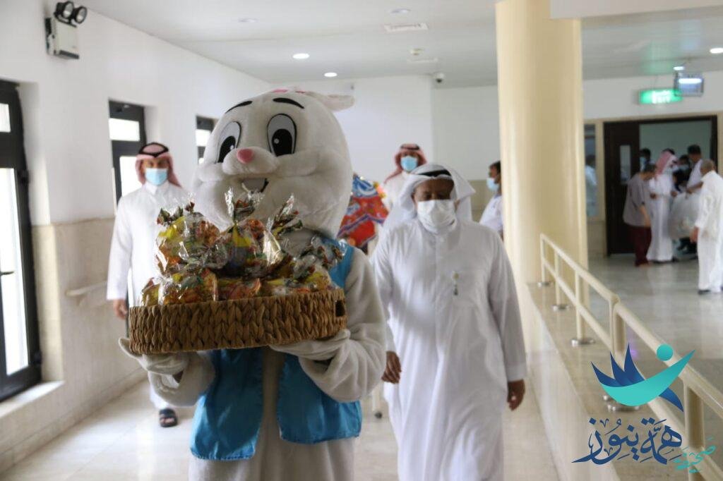 ففي يوم الأثنين الموافق ٢١-٩-١٤٤٢ ومن بوادر الخير والعطاء للأسرة المتكاملة تحت سقف نحن عون لهم ..حرص مدير مركز التأهيل الشامل بالأحساء الأستاذ /عبدالله المسعود ، على إدخال البهجة والسرور على المستفيدين بتوزيع بعض الحلويات ومشاركتهم الفرحة ، وذلك بوجود بعض الدمى والمجسمات المتحركة لتغييرالروتين اليومي وصناعة أجواء تملؤها الألفة والمحبة .