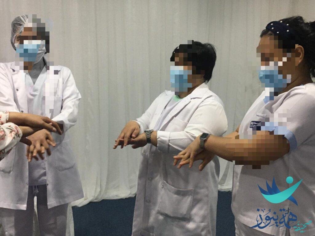 وتحدثت طبيبه المركز روان البراهيم من خلال المحاضرة عن أهمية غسل الأيدي وماهي اللحظات الخمس الخاصة بالغسيل ، وتخلل البرنامج عرض فيديو عن المدة الصحيحة والكافيه لتخلص اليد من البكتريا العالقة وهي 40 ثانيه ،وطبقت مع الحضور من منسوبات المركز والعماله الطريقة الصحيحة لغسل الكفين والتعقيم مع التأكيد على أهمية تطبيق الاحترازات الوقائية أثناء العمل حفاظاً على سلامة الجميع ،
