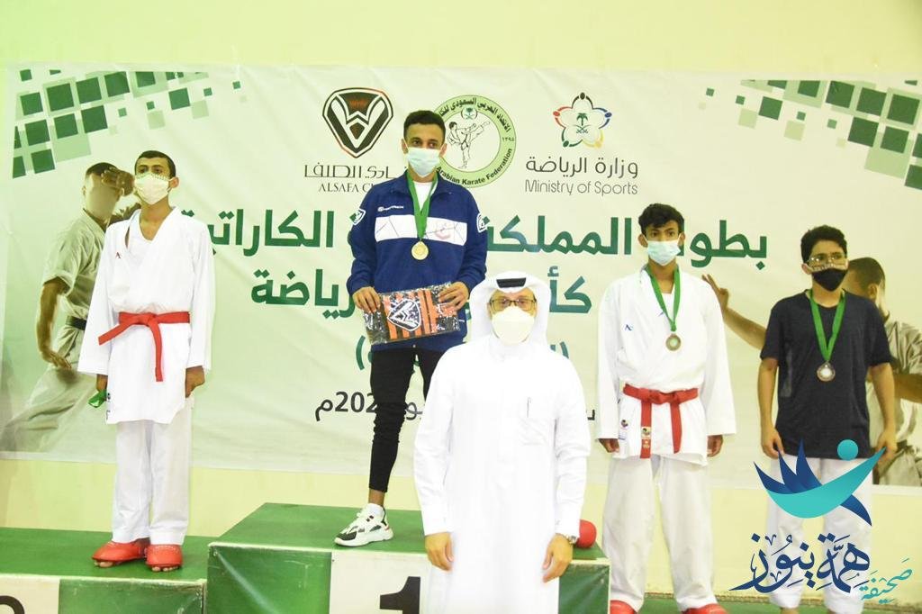 توج رئيس الإتحاد السعودي للكاراتيه سعادة الدكتور مشرف الشهري يوم السبت ٣٠ ذو القعدة أصحاب المراكز الأولى في بطولة المملكة للأندية على كأس وزير الرياضة للكاراتيه لدرجة الشباب في منافسات الكاتا والقتال والتي أقيمت على الصالة الرياضية بنادي الصفا بصفوى بالمنطقة الشرقية ، بحضور رئيس نادي الصفا الأستاذ محمد غلاب وعضو مجلس إدارة الإتحاد السعودي للكاراتيه تركي بخاري.
