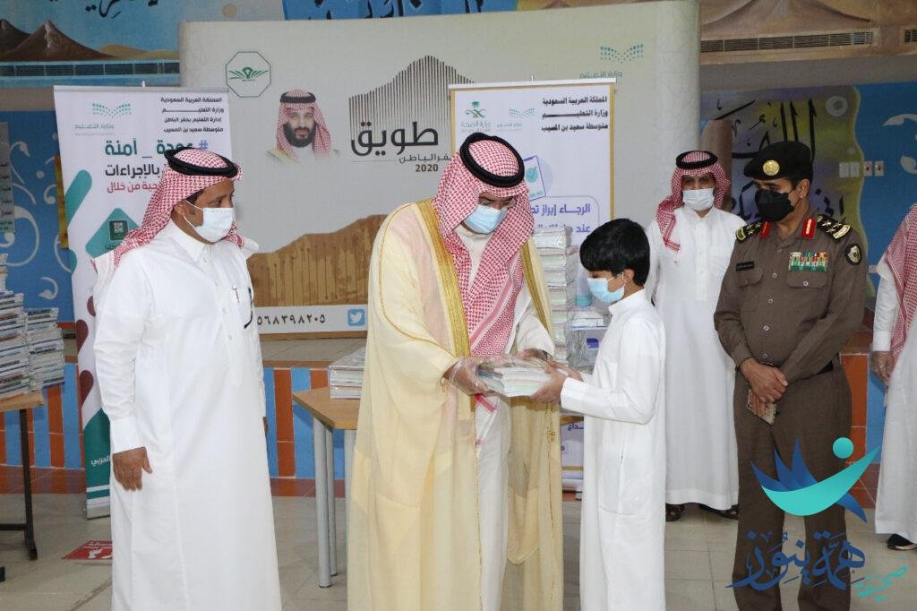 من جانبه فقد عبر مدير التعليم بحفرالباطن ” عن سعادة منسوبي التعليم بزيارة سمو محافظ حفر الباطن ومشاركته لنا بأول يوم حضوري للعام الدراسي ومشاركته لنا في تسليم الكتب الدراسية في أول يوم دراسي لأبنائه الطلاب ، وكذلك مروره على مرافق المدرسة ومنها غرفة العزل ولاشك بأن مشاركة سموه دافع لنا جميعاً, كما أحب أن أطمئن المجتمع التعليمي والأسر بأنه ولله الحمد الأجراءات الإحترازية بجميع مدارسنا مطبقة بشكل مثالي ولله الحمد ، وكذلك النماذج التشغيلية التي نعمل عليها بشكل مستمر وكذلك عمليات الفرز الحيوية منذ بداية اليوم الدراسي, ونسأل الله التوفيق لأبنائنا الطلاب وبناتنا الطالبات وللجميع.