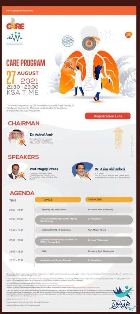 وحقق برنامج العناية الذي أقامته الجمعية السعودية لطب الأسرة والمجتمع بالتعاون مع جلاسكو الطبية السعودية ودعا إليه ملتقى الخبرات لتنظيم المعارض والمؤتمرات الطبية FEXC عبر المنصة الإلكترونية افتراضيًا نجاحًا كبيرًا من حيث التفاعل والحضور غير المسبوق من الأطباء والممارسين الصحيين من المملكة العربية السعودية وخارجها ، إذ تجاوز عدد المشاركين 8500 طبيب وممارس صحي.