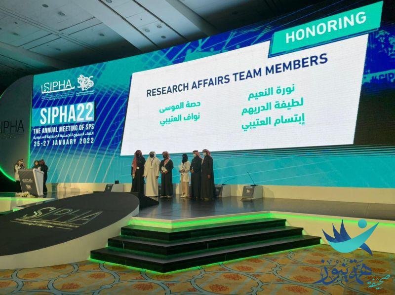 في ختام نسخة SIPHA22 كرم نائب قائد لجنة البرامج الكُبرى في جمعية الصيادلة السعوديين (الفرع الطلابي) الأستاذة حصة الموسى على الجهود التي بُذلت في مؤتمر SIPHA لعامي ٢٠٢٠ و ٢٠٢١ على مستوى الصيادلة.