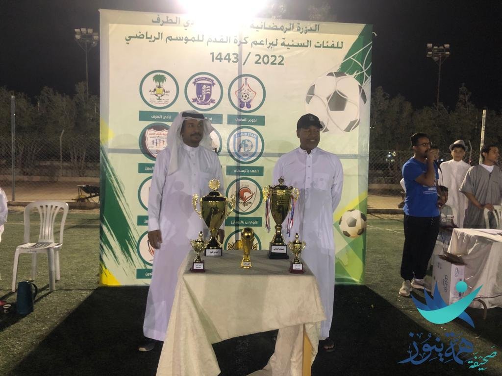وسط حضور جماهيري كبير حضر المباراة النهائية لدورة نادي الطرف الرمضانية لكرة القدم للبراعم ، حيث دخل الفريقان إلى أرض الملعب مع بعض وتم تأدية السلام الملكي السعودي ، حيث جمعت المباراة فريق أسود المركز وفريق الراقي من الجرن ومنذ بداية المباراة وكل فريق يحاول التسجيل وانتهى الوقت الأصلي بالتعادل ، مما إضطر الحكم للجوء لركلات الترجيح الذي حسمها أسود المركز بالفوز