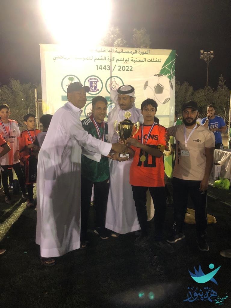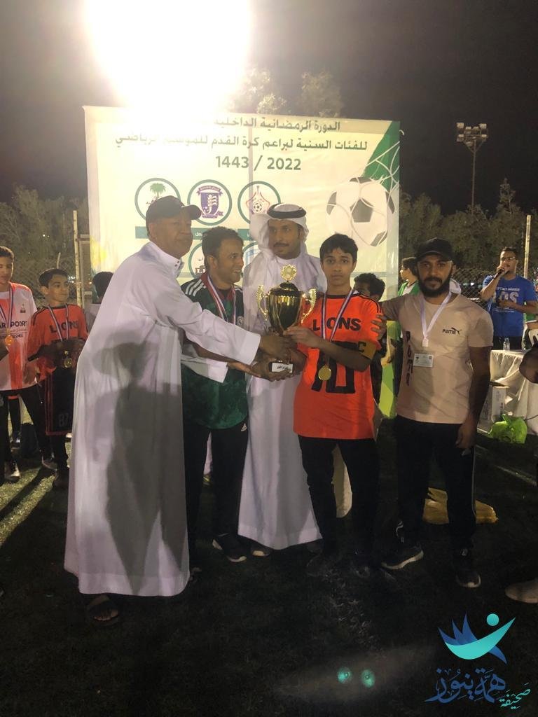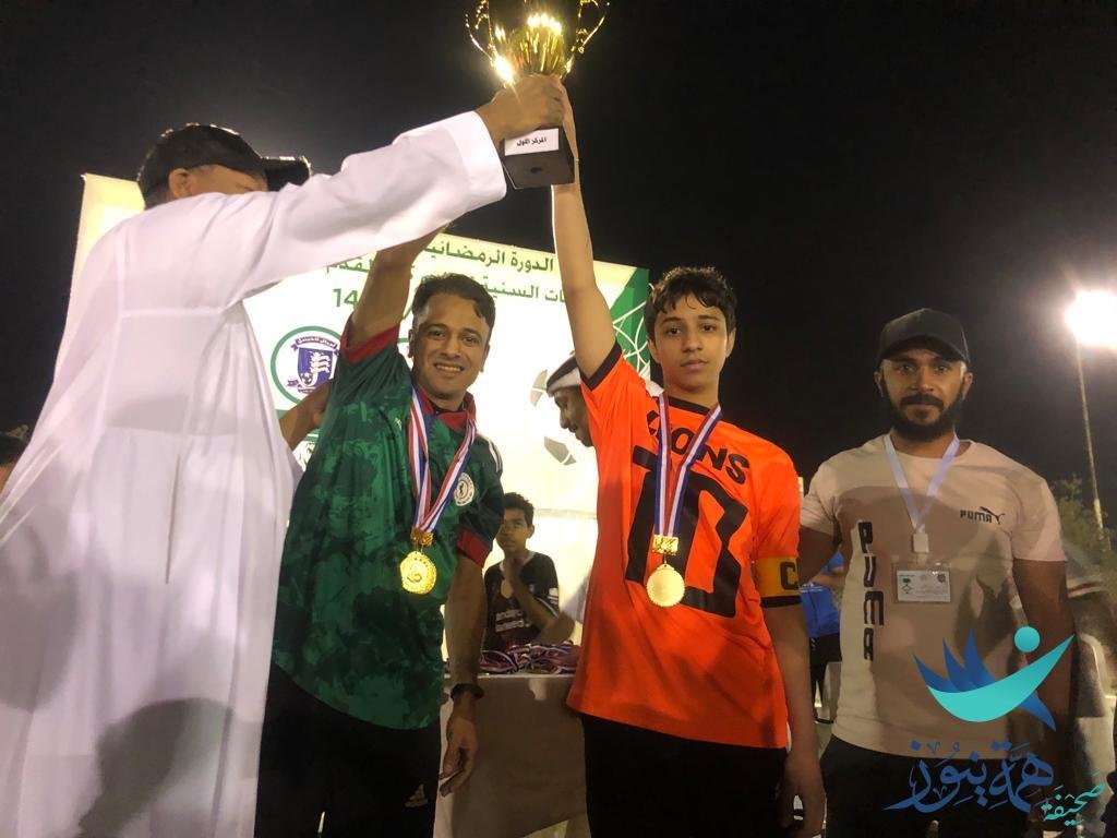 وبعد نهاية المباراة توجت اللجنة المنظمة للدورة الرمضانية بنادي الطرف الفريق الحاصل على كأس البطولة وهو فريق أسود المركز مع توزيع الميداليات الذهبية لجميع اللاعبين والمدرب والإداري .. وكذلك تسليم الكأس و الميداليات على الفريق الحاصل على المركز الثاني والميداليات الفضية وسط فرحة عارمة من الجميع ..