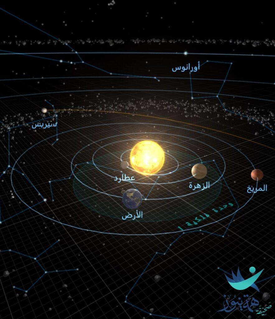 الصورة المرفقة: محاكاة حاسوبية تظهر اورانوس خلف الشمس مباشرة من منظورنا على الأرض يوم اقترانه بالشمس .