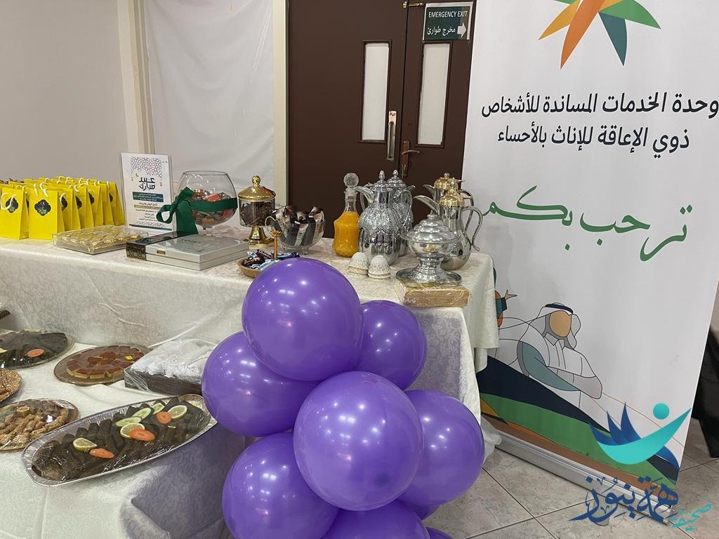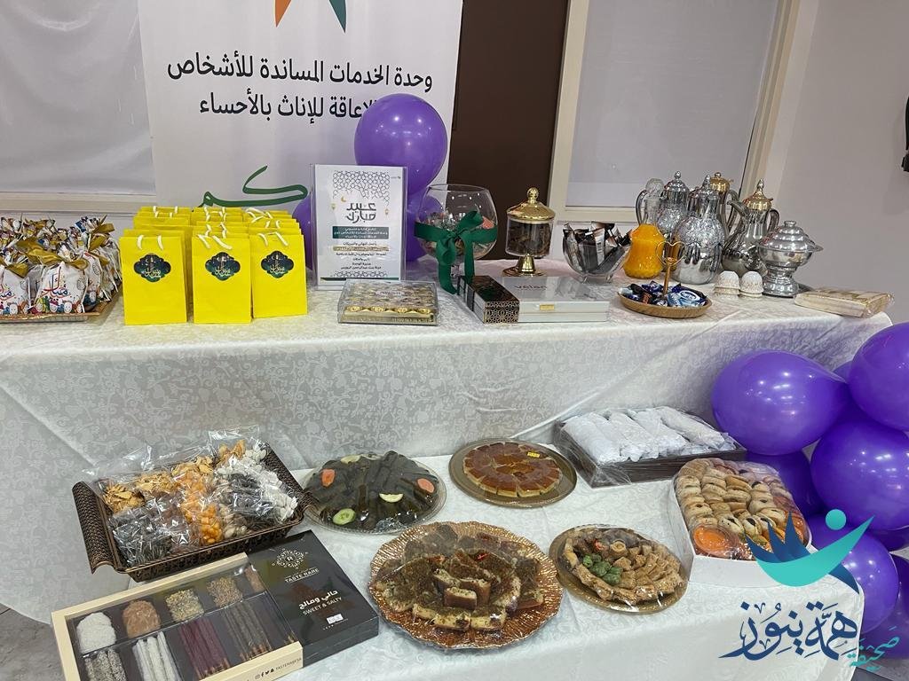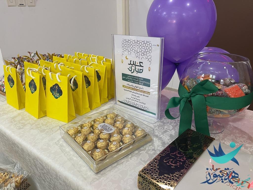 نظمت وحدة الخدمات المساندة للأشخاص ذوي الإعاقة للإناث بالأحساء صباح اليوم الأثنين ٨ / ١٠ / ١٤٤٣ الموافق ٩ مايو ٢٠٢٢ م حفل المعايدة السنوي لعيد الفطر المبارك لمنسوباتها ومستفيداتها المراجعات من ذوي الإعاقة وأولياء أمورهن . بإشراف مديرة الوحدة أ / خزنة بنت عبدالرحمن الرويس .