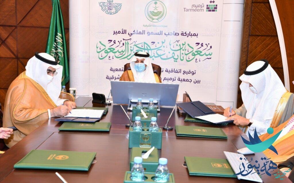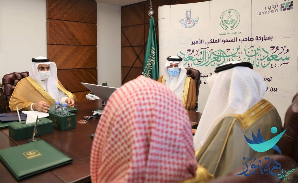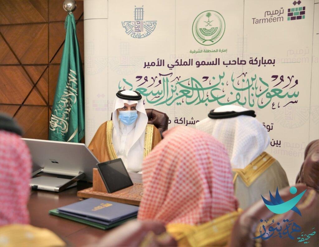 وبارك سموه توقيع اتفاقية بين أمانة المنطقة الشرقية وجمعية ترميم بديوان الإمارة اليوم الأربعاء، ووقع عن الأمانة معالي أمين المنطقة الشرقية المهندس فهد الجبير وعن جمعية ترميم رئيس مجلس إدارة الجمعية المهندس حمد الخالدي.