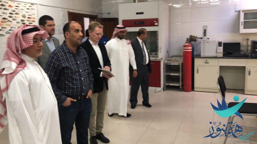 وأشار م. المطيري إلى أن ورشة العمل اشتملت على تقديم عرض مرئي بالإجراءات المتبعة في التشخيص وطرق التعامل الصحيحة مع العينات في مختبرات صحة وسلامة الأسماك بالقطيف، بعدها تم الوقوف على إدارات وأقسام وطريقة العمل بالمختبر والتي منها (الاستزراع في السعودية وأنواع العينات المستقبلة في المختبر – فريق العمل – الأدوات – الاعتماد – تسجيل العينات – طريقة عمل المختبر … الخ، وعرض مرئي عن مهام المختبر المرجعي الأوروبي لأمراض الأسماك والقشريات واختبار الكفاءة وجمع البيانات والتدريب، وعرض مرئي للتعرف على قانون الاتحاد الأوروبي لصحة الحيوان وقائمة الأمراض وبرنامج مراقبة الأمراض وتأكيد الحالات المرضية وطرق السيطرة عليها، وفي نهاية الورشة دارت نقاشات علمية حول طرق تشريح العينات وتشخيص الأمراض ومقارنة بين مختبر المعهد الوطني الدنماركي للموارد المائية ومختبر صحة وسلامة الأسماك بالقطيف.