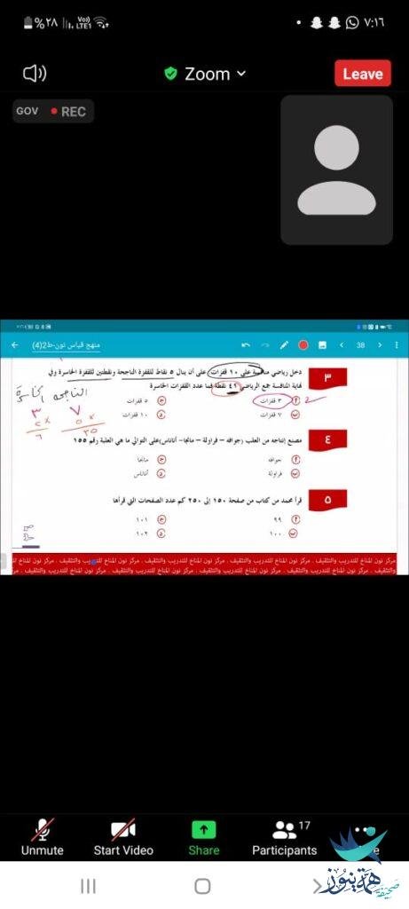 عليه اختتم مساء اليوم دورة (القدرات العامة بنسختها الرابعة ) المنفذة عن بعد ابتداء من يوم الإثنين الماضي الموافق ١٤٤٣/١٠/٨ه إلى يوم الإثنين الموافق ١٤٤٣/١٠/١٤ه من الساعة السابعة مساء وحتى التاسعة عبر تدريب تفاعلي على منصة زوم و على مدى ثمانية أيام تدريبية بتقديم وإشراف المدرب عرفات الجراش استهدف من خلالها طلاب وطالبات الثانوية العامة والمنفذة بواقع (١٦ )ساعة تدريبية علما بأن عدد الحضور بلغ (١٨ ) طالب وطالبة قدمت للمستفيدين من الضمان الاجتماعي سعيا لتمكينهم وتحقيق تطلعات رؤية ٢٠٣٠ .
