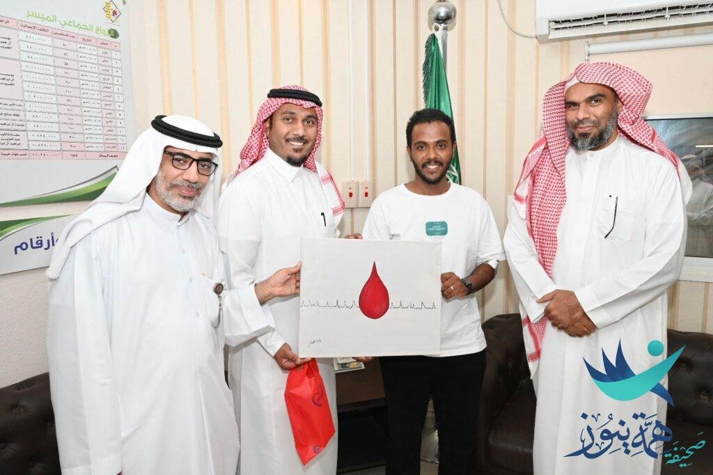 والتكريم عبارة عن لوحات فنية جميلة حول التبرع بالدم مقدمة من قسم الفنون الجميلة بفريق عيون هجر الراعي الإعلامي للحملة ومن إبداع عضو الفريق الفنانة التشكيلية الدولية الأستاذة رحمة العامر.