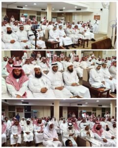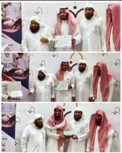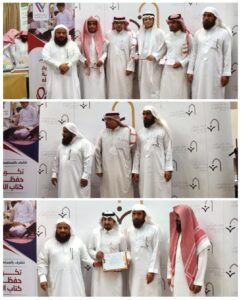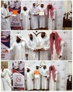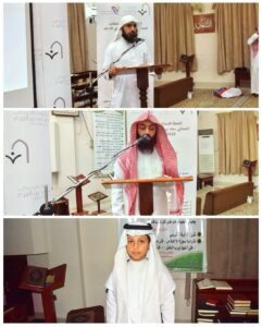 وبعد ذلك كلمة راعي الحفل فضيلة الشيخ سليمان الحصين والذي شكر فيها الله سبحانه وتعالى على ما منّه علينا من نعمه الكثيرة والتي منها حفظ كتاب الله الكريم والاعتناء به وكذلك حكومة خادم الحرمين الشريفين الملك سلمان بن عبدالعزيز وولي عهده الأمين صاحب السمو الملكي الأمير محمد بن سلمان حفظهم الله على مايقدمونه من دعم كبير للجمعيات التي تعني بحفظ كتاب الله الكريم