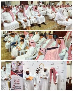 وكذلك أثنى على الداعمين ومايقدمونه من دعم سخي للجمعية وبخصوص رجال الأعمال والشركات التي ساهمت مشكورين في تقديم الدعم دون تردد، ثم تلا أحد الطلاب المتميزين تلاوة خاشعة.
