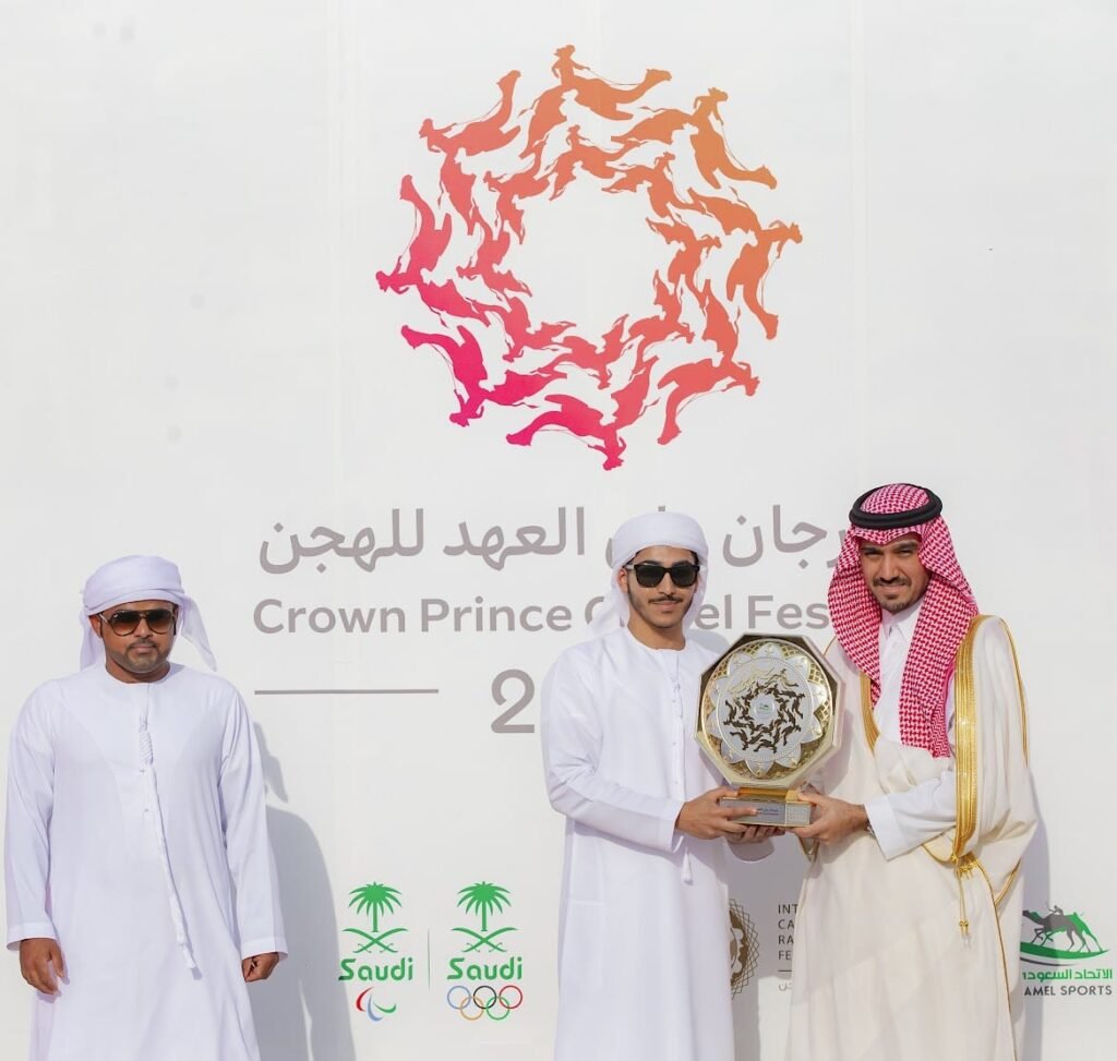 كرّم صاحب السمو الملكي الأمير عبدالعزيز بن تركي الفيصل وزير الرياضة رئيس اللجنة الأولمبية والبارالمبية السعودية رئيس الاتحاد الدولي للهجن اليوم 16 فائزاً بكؤوس فئات الحقايق واللقايا والجذاع والثنايا في أشواط المرحلة النهائية بمهرجان ولي العهد للهجن 2022 بواقع اربعة فائزين في كل فئة، وذلك بحضور سمو رئيس الاتحاد الأمير فهد بن جلوي قبل يومٍ واحد من الحفل النهائي للمهرجان والمنتظر إقامته يوم غد برعاية كريمة من صاحب السمو الملكي ولي العهد نائب رئيس مجلس الوزراء الأمير محمد بن سلمان بن عبدالعزيز حفظه الله.