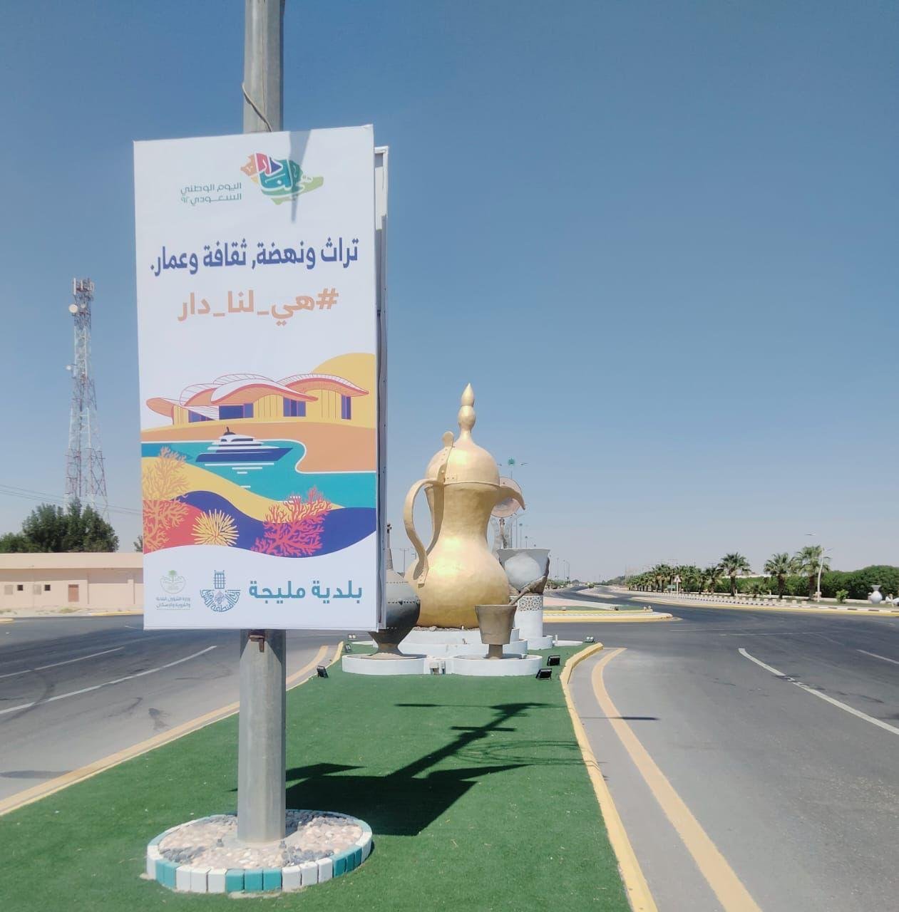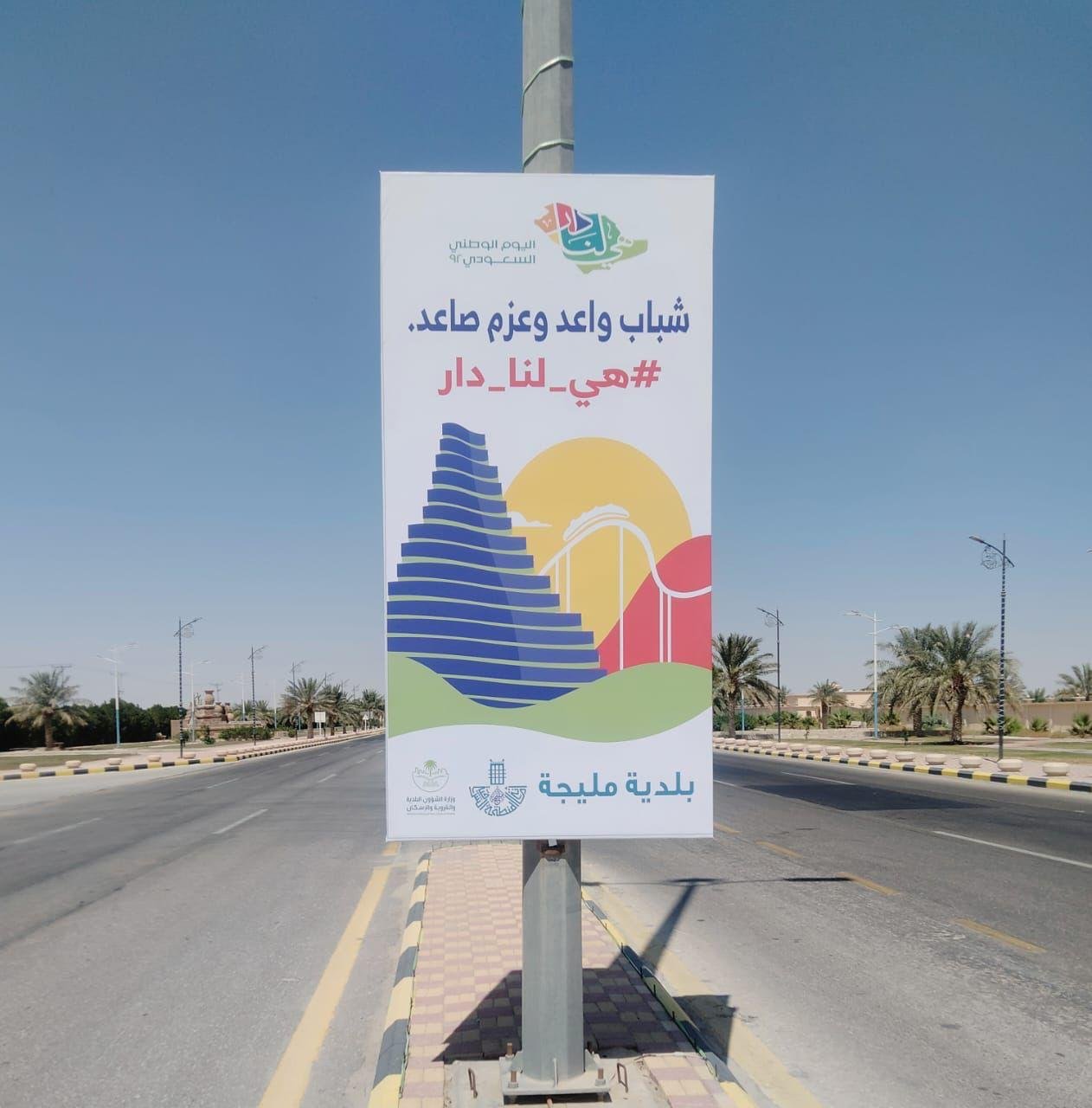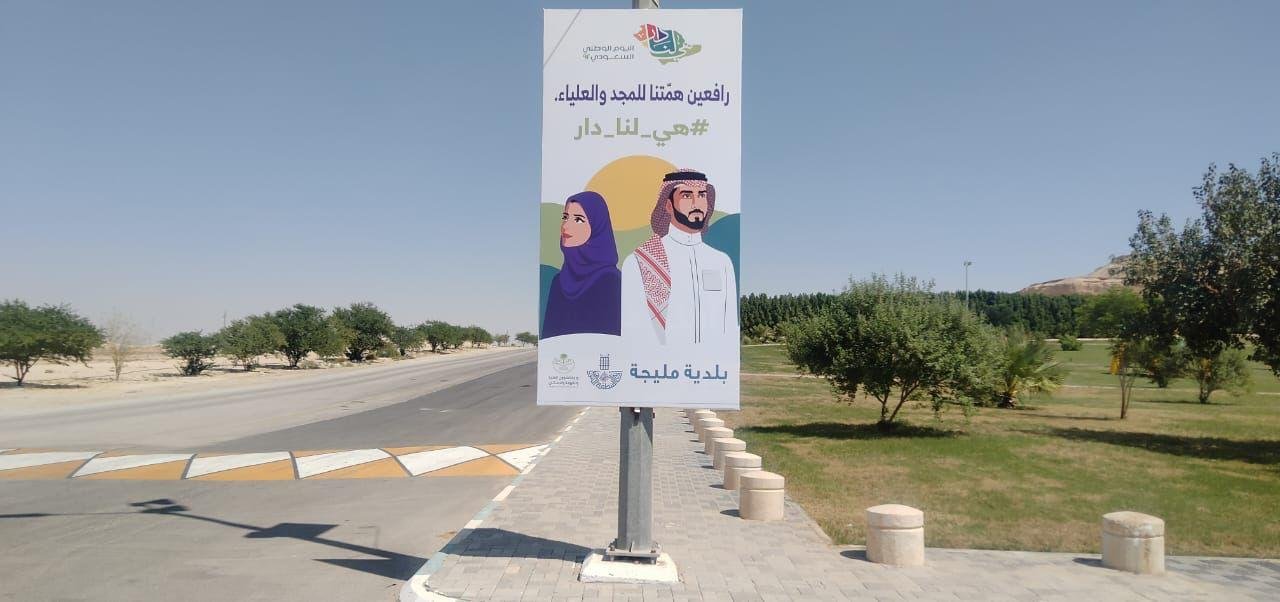 (أنهت بلدية مليجة، أعمال تجهيز الشوارع والميادين بتركيب الزينة والأعلام للاحتفاء باليوم الوطني الـ92 للمملكة، الذي يصادف 23 سبتمبر الجاري، وتضمّنت الأعمال التي بدأت وتيرة العمل فيها خلال الأيام الماضية، تزيين الشوارع والميادين، وذلك بتركيب اللوحات لليوم الوطني، وتركيب الأعلام وتزيين أعمدة الإنارة، بتركيب عناقيد الزينة باللون الأخضر على جميع أعمدة الإنارة في أرجاء مليجة، والقرى التابعة لها وتجهيز وصيانة المسطحات الخضراء في مليجه وجميع الهجر التابعة للبلدية والألعاب الخاصة بالأطفال، وذلك لاستقبال الزوار والمتنزهين ابتهاجاً بهذه المناسبة الوطنية، كما تم تكثيف الجهود المستمرة بأعمال النظافة والصيانة.