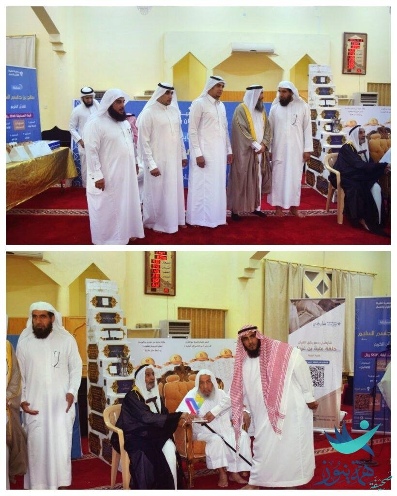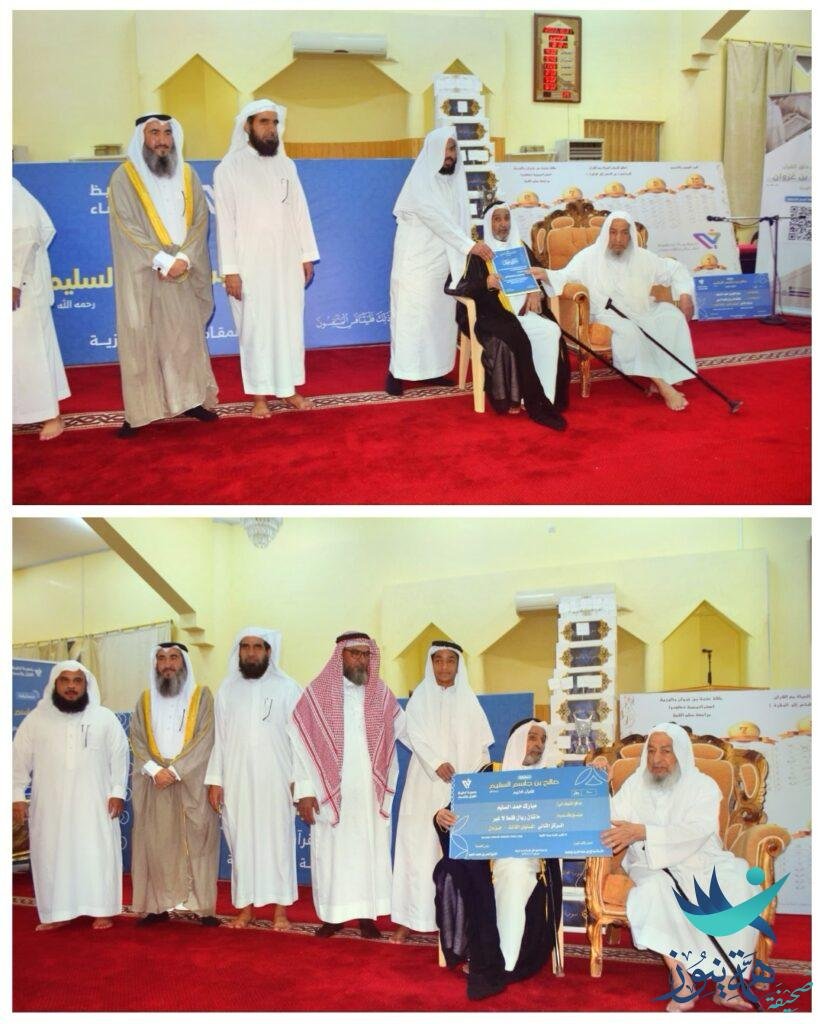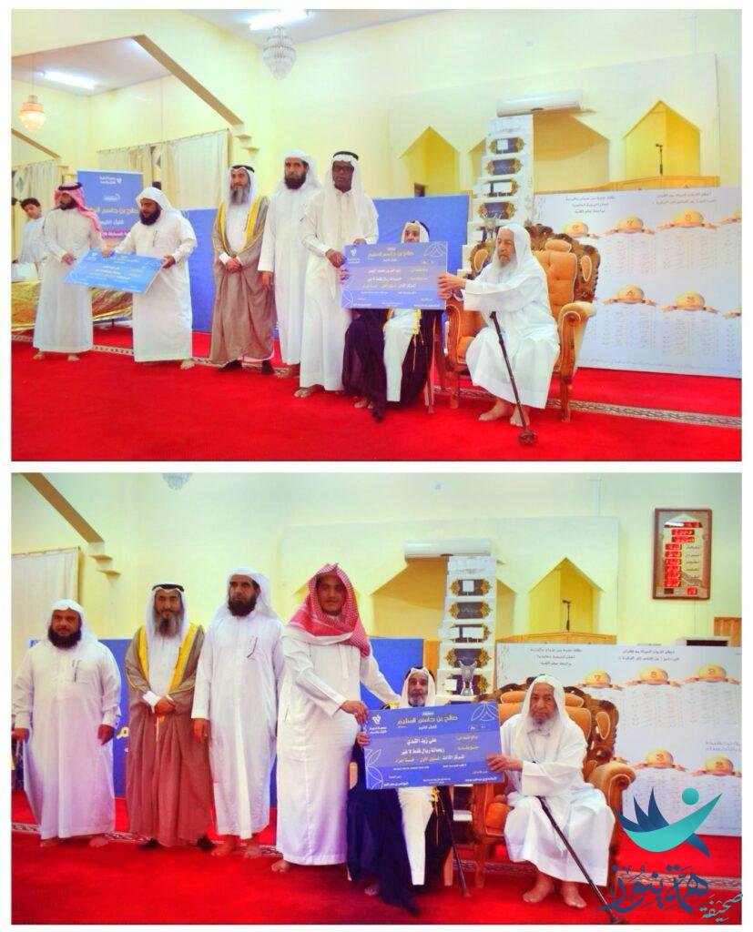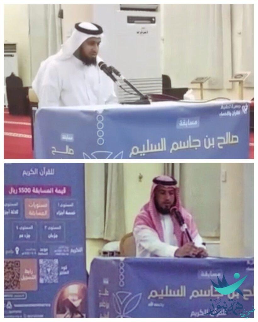 والشيخ عاطف المحيسن ومحكمين المسابقه ورؤساء الحلقات في مدينة العيون كل من الشيخ مبارك العساف وعبدالله القرناس