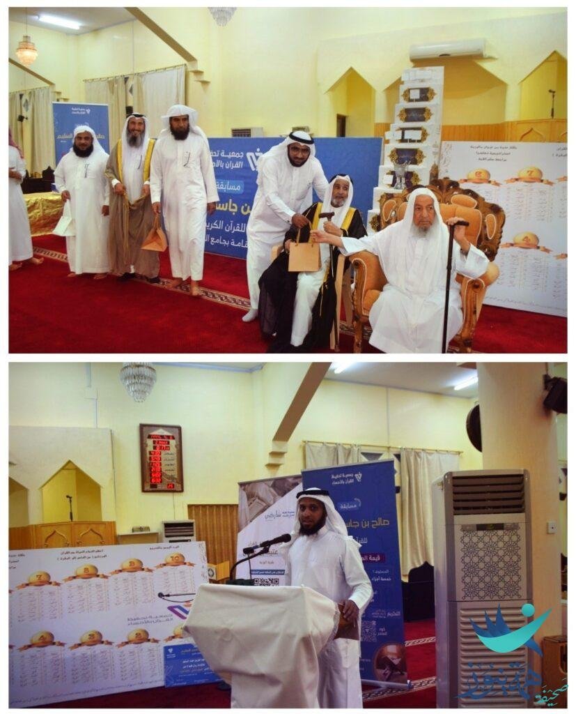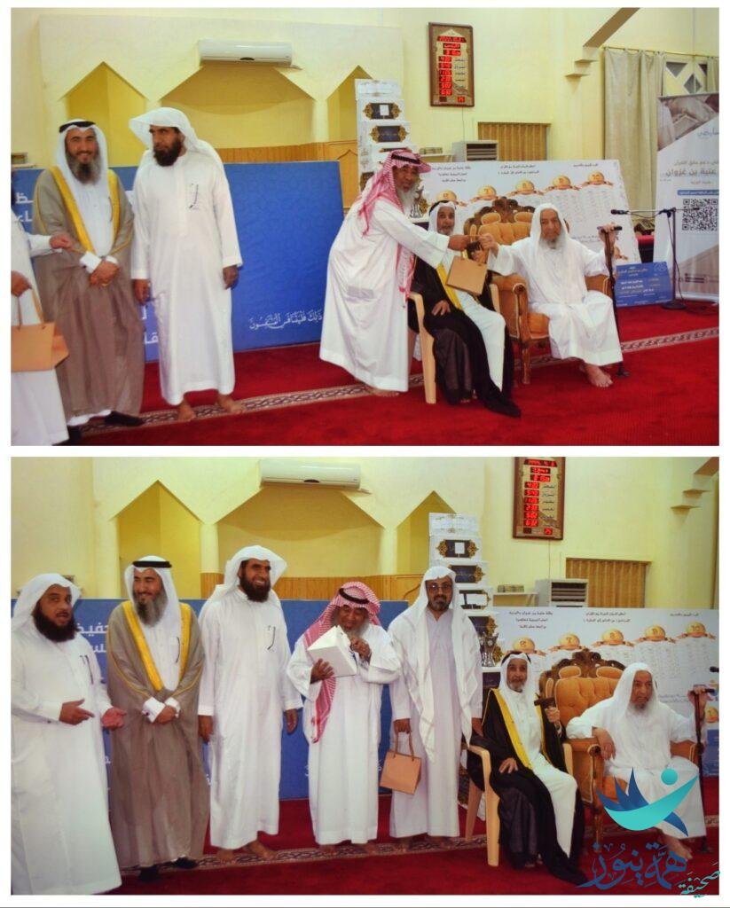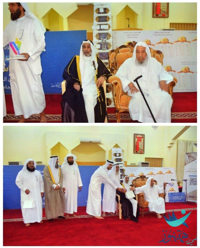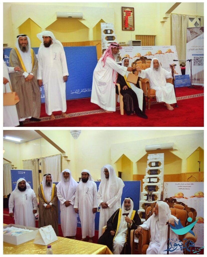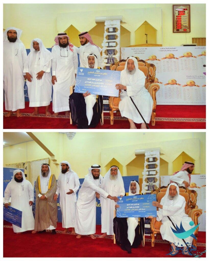 والشيخ عاطف المحيسن ومحكمين المسابقه ورؤساء الحلقات في مدينة العيون كل من الشيخ مبارك العساف وعبدالله القرناس