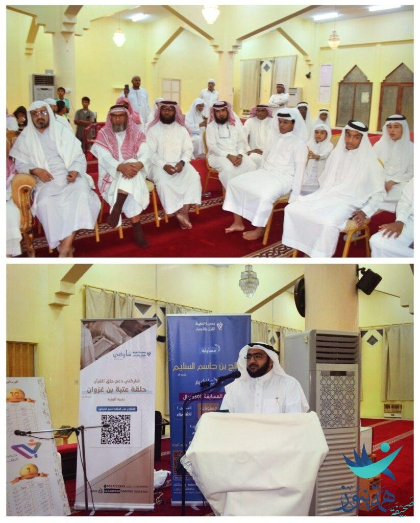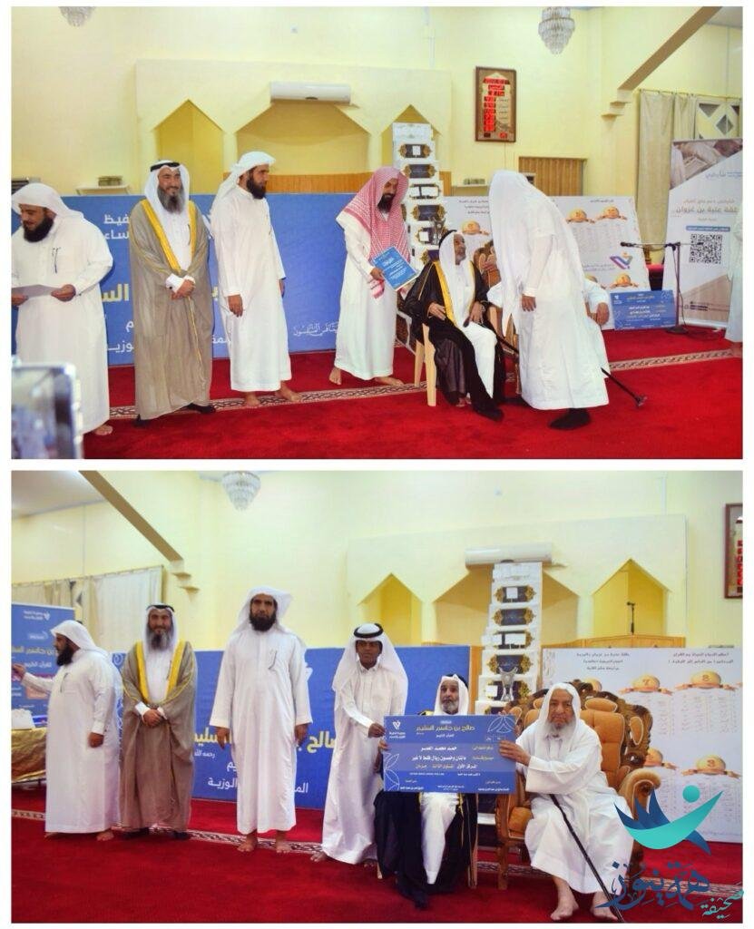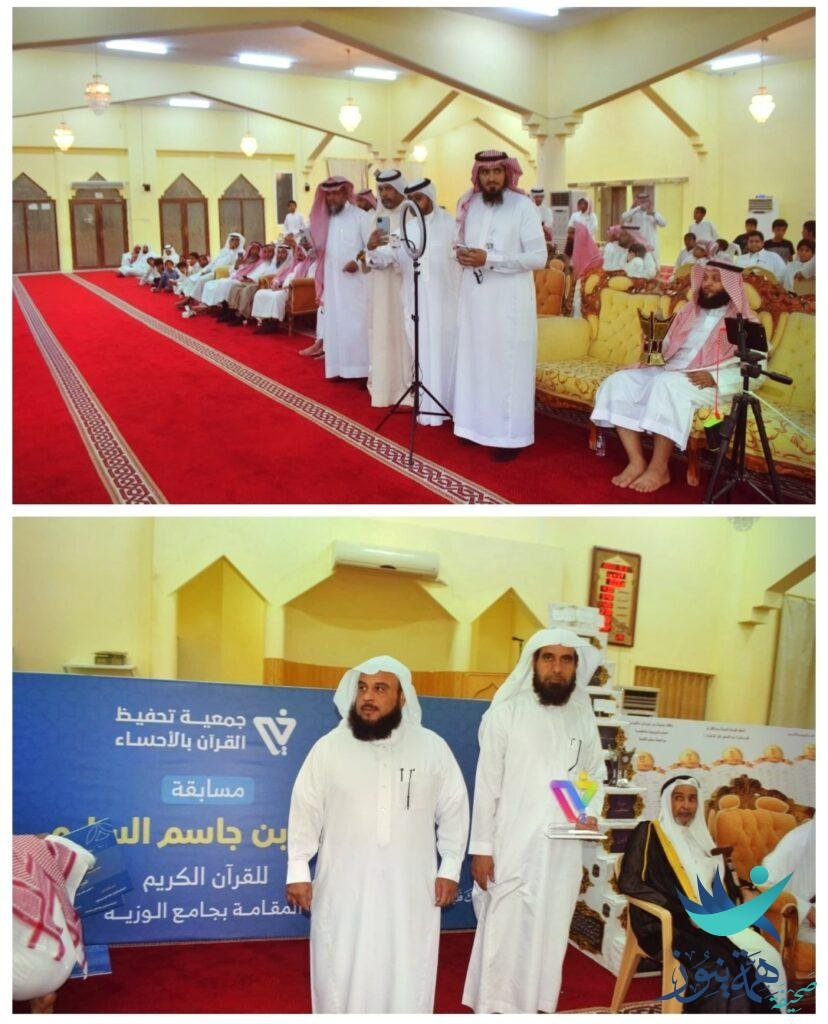 احتفل يوم الاثنين لليلة الثلاثاء بتاريخ/٤/٦ /١٤٤٤هجرية في جامع بلدة الوزية بالاحساء ختام مسابقة المرحوم بإذن الله تعالى أ. صالح بن جاسم السليم والتي اشرفت عليها جمعية خير لتحفيظ القرآن الكريم بالأحساء وذلك بحضور