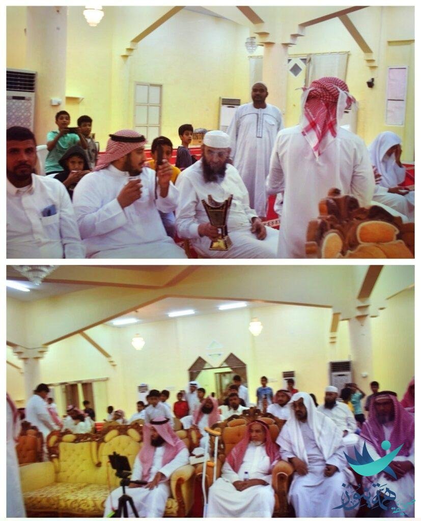 جأت لحظة التكريم حيث كرم جميع الفائزين بالمسابقه والتي خصص لها مبلغ ٥٥٠٠ريال آلاف وخمسمائة ريال وكذلك خصصة للذكور وقد تنافس فيها ( ٤٠ ) متنافس