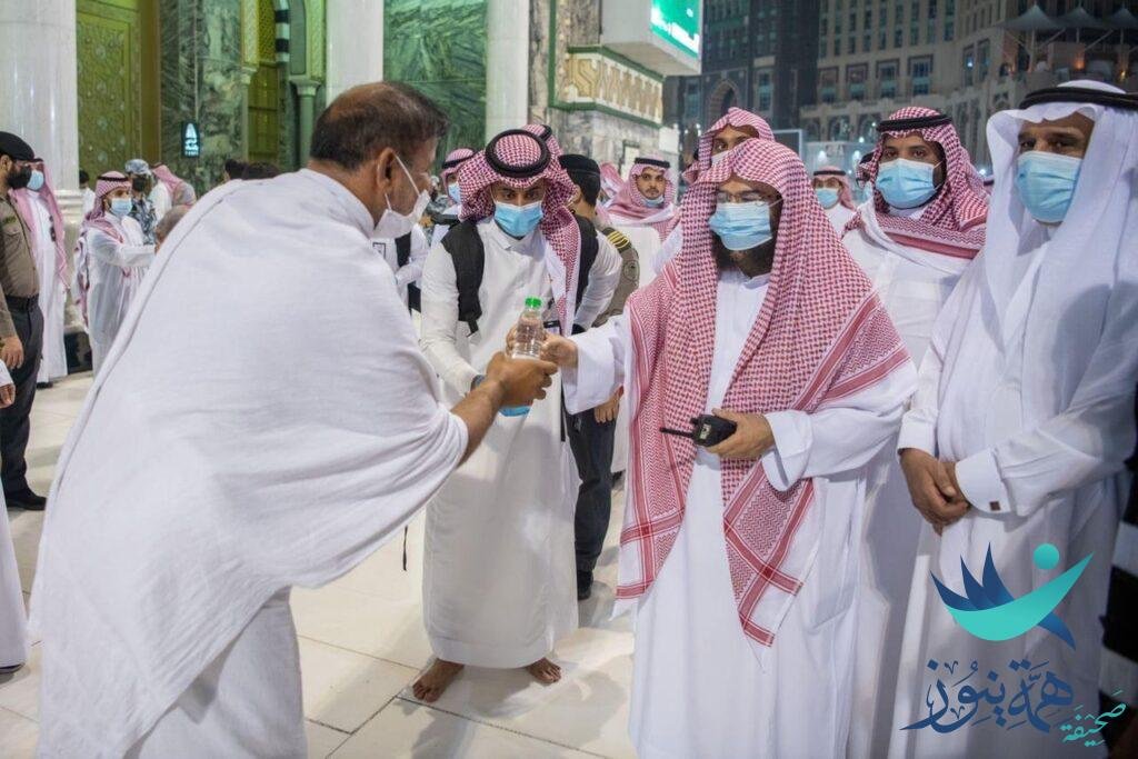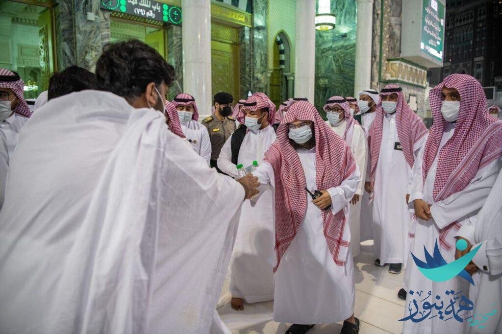 استقبل معالي الرئيس العام لشؤون المسجد الحرام والمسجد النبوي الشيخ الأستاذ الدكتور / عبدالرحمن بن عبدالعزيز السديس – أول فوج من المعتمرين القادمين من خارج المملكة العربية السعودية .