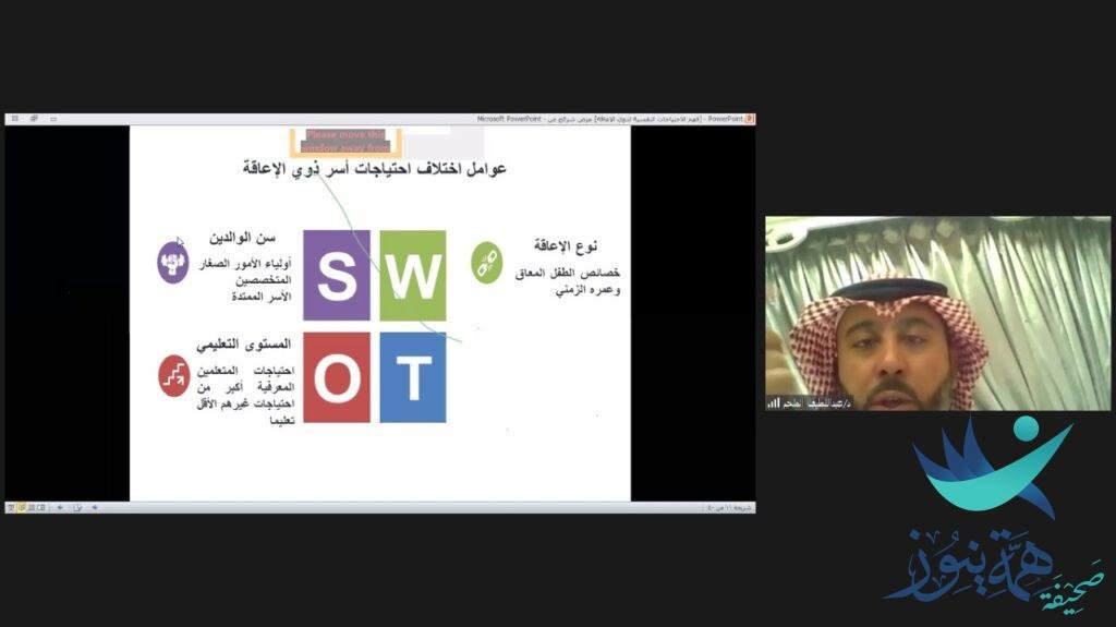 انطلاقا من الحملة الإعلامية (مكاني بينكم) التي أطلقتها وزارة الموارد البشرية والتنمية الإجتماعية ، لتمكين الأشخاص ذوي الإعاقة الملحقين في مراكز التأهيل الشامل ودمجهم بأسرهم ، وبالتعاون مع جمعية التنمية الأسرية بالأحساء، نفذ مركز التأهيل الشامل بالأحساء محاضرة تثقيفية عن بعد ، عبر برنامج زوم بعنوان ” فهم الاحتياجات النفسية لذوي الإعاقة و أسرهم ” مساء يوم الأربعاء العاشر من الشهر الحالي ، ألقاها المستشار النفسي بجمعية التنمية الأسرية ومشرف التوجيه والإرشاد بالإدارة العامة لتعليم الأحساء الدكتور / عبداللطيف بن صالح الملحم ، بإشراف عام من مدير المركز عبدالله المسعود ، ومتابعة رئيسة القسم النسائي عبير الحمد و بتنسيق وترتيب من رئيس وحدة العلاقات العامة و الإعلام بالمركز الاستاذ / طلال البراهيم ، استهدفت أسر و أولياء أمور المستفيدين بالمركز والموظفين والموظفات بفروع الوزارة والمهتمين بهذا المجال ، وفي نهاية المحاضرة التثقيفية ، شكر رئيس العلاقات العامة و الإعلام الدكتور / عبداللطيف الملحم على جهوده الرائعة وأداه المميز في الوقوف على أبرز النقاط المهمة في دعم و تمكين الأشخاص ذوي الإعاقة ودمجهم بالمجتمع ، و تأتي هذه المحاضرة التثقيفية ضمن الحملة الإعلامية (مكاني بينكم) كجزء من سلسله المحاضرات التي تم الاتفاق عليها بالشراكة المجتمعية مع جمعية التنمية الأسرية بالأحساء.
